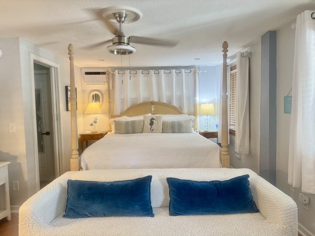 You will love this unique and romantic escape! Just a quick walk to the nearest beach access and close to many great restaurants, this is the perfect getaway for couples. Our studio features a comfortable queen sized bed, smart tv, Keurig coffee maker, mini fridge and a luxurious custom tiled shower.