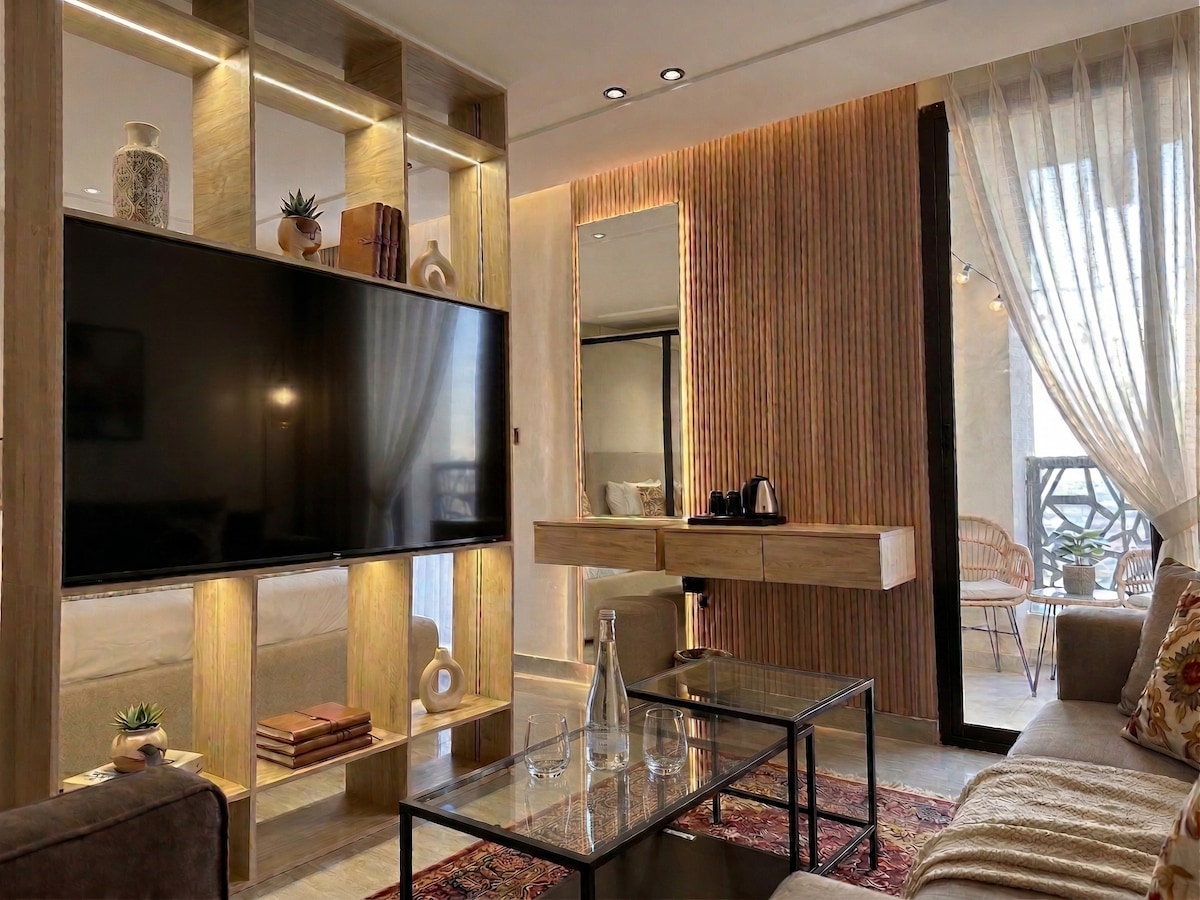 اكتشف إقامة استثنائية في استوديو أنيق صُمم ليمنحك مزيجًا مثاليًا من الراحة والخصوصية. استمتع بنوم هادئ على سرير كينج فاخر، واسترخِ على كنب مريح في أجواء هادئة ودافئة. استمتع بتجربة مشاهدة مميزة على شاشة 65 بوصة مع إنترنت مجاني سريع لتبقى متصلاً طوال الوقت. ولحظات الاسترخاء، استمتع ببانيو واسع وجميل يمنحك تجربة استحمام فاخرة بعد يوم طويل. المكان مثالي للأزواج أو للمسافرين الباحثين عن إقامة أنيقة ومريحة وتجربة لا تُنسى. ✨🛁�