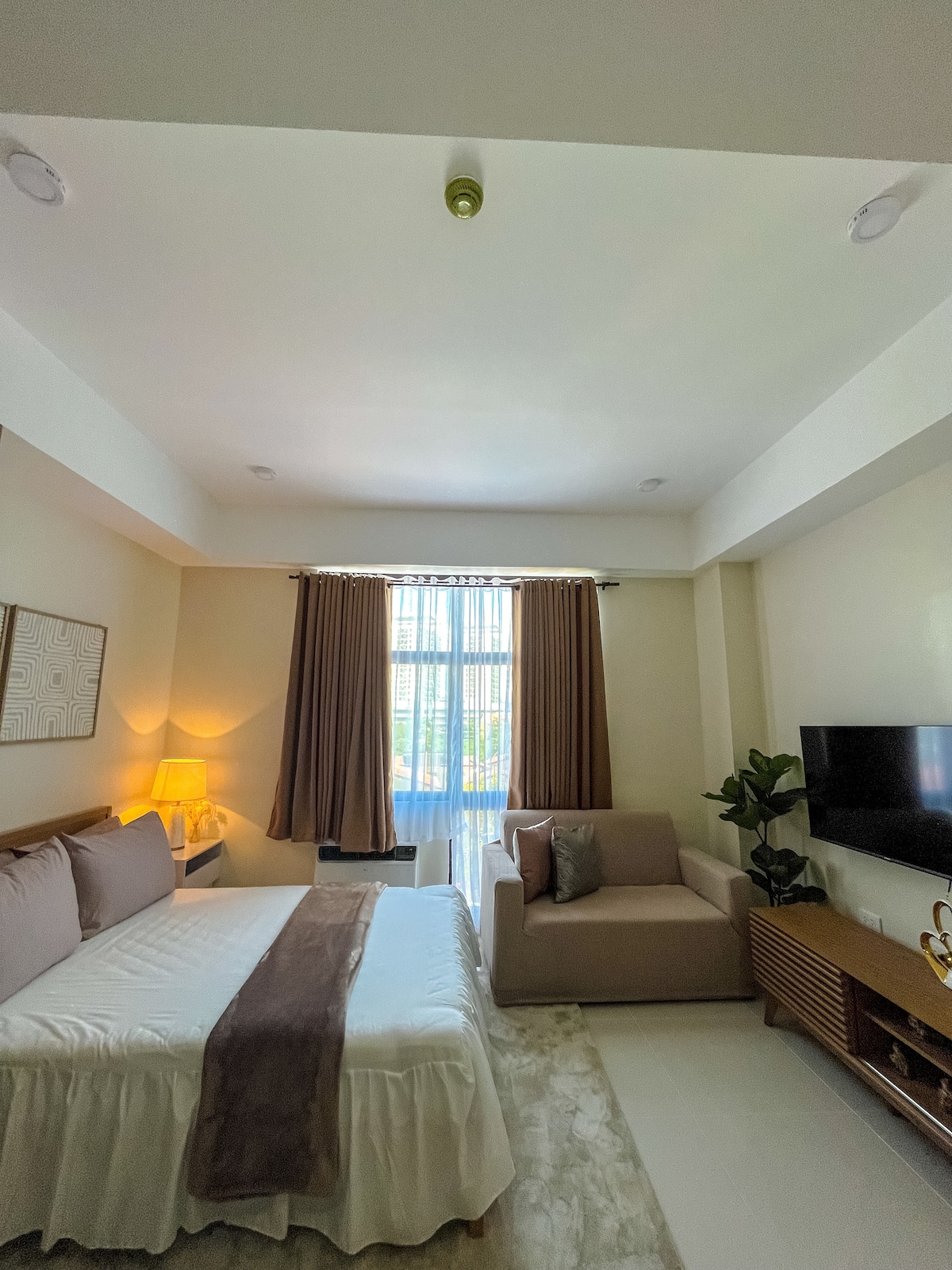 Explore Lapu-Lapu City|FREE Pool|Gym|Fast Wifi|Netflix|Near Airport & Mactan Newtown Address: Mactan Plains Residences Angasil Road Lapu-lapu City, Cebu. Hotel-like unit w/ 1 double bed w/ premium linens + Sofabed & blackout curtains. Magnificent views of the far city and trees, unwind with a poolside dip or garden stroll—all just steps from cafes, malls & business center. A sunlit studio w/ modern minimalism & clever design: Tree-mendous Views|Compact Luxury|Chef-Ready Kitchen|Serene vibes!