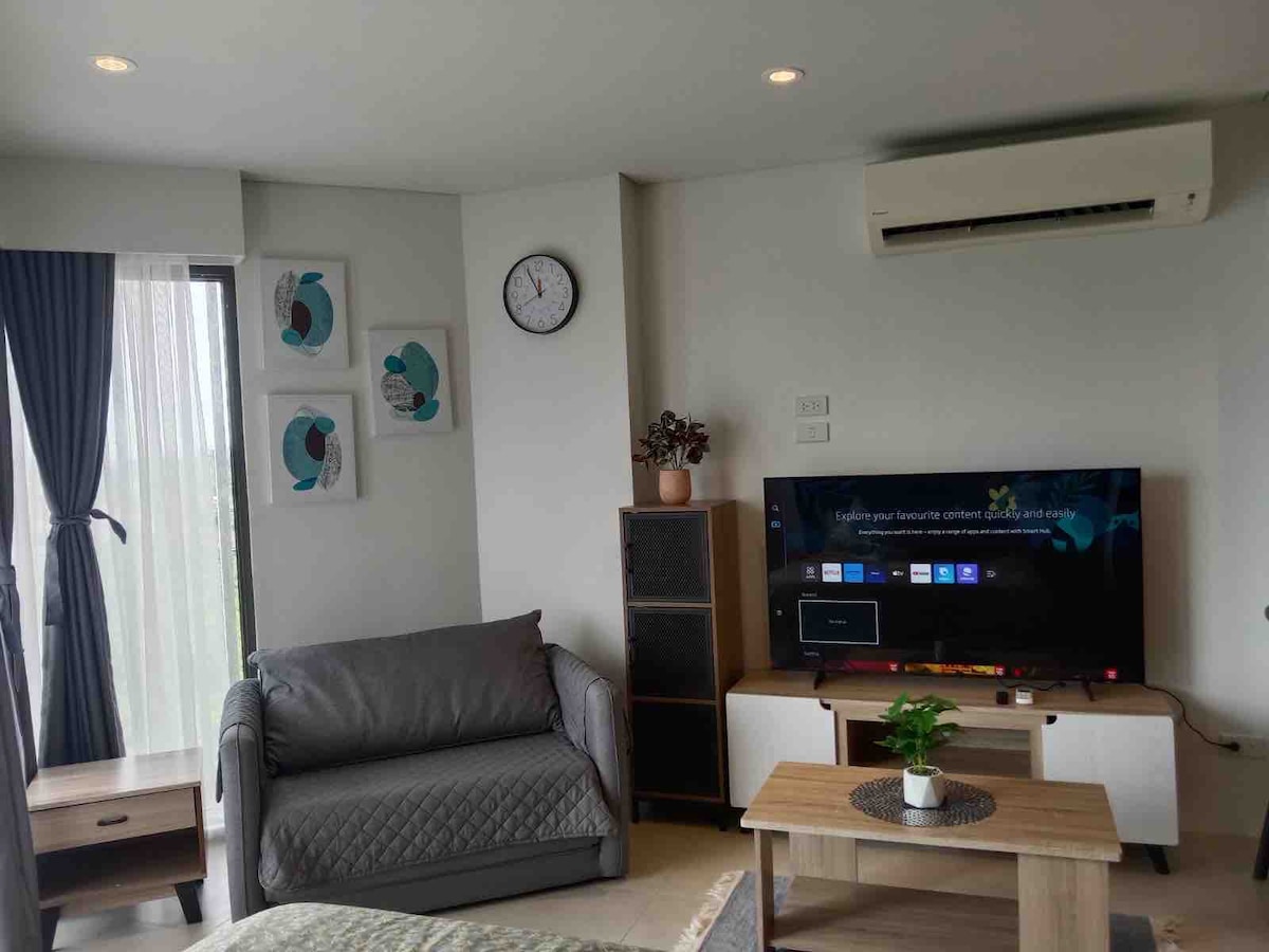Executive Studio for 2 people 15 minutes to Airport New quality Queen Bed & Sofa Free filtered Drinking Water,Japanese Dispenser Wi-Fi/SmartTV/FreeNetflix Safe Smart Lock Hot Shower, Bidet FullyEquipped Kitchen Balcony,Seaviews&Breezes GordonRamsay/Japan/Korean/Spanish/Filipino Restaurants,retail Concierge,Pools,24hrSecurity Supermarket, Bakery,Starbucks,McDonald’s, Pharmacy. 400m walk to Beach, Beach Passes Php350/person daily NOTE:Construction/Noise next door.Discounted daily rate is 30%