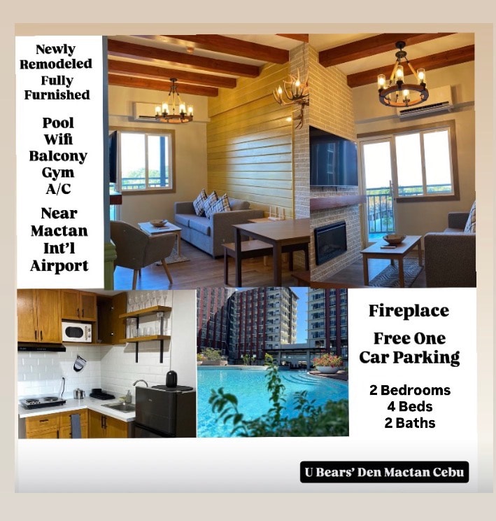 ❌6 pax at all time ❌ NO PETS allowed ✔️Copy of ID & docusign needed to be completed. Welcome to U Bears’ Den Mactan Cebu!🐻 As you step inside, you’ll be greeted by an inviting living area with touches of modern minimalistic design. The view from the living room is both relaxing & captivating, complemented by a brand-new & stylish electric fireplace—perfect for creating the cozy atmosphere of a snowy Swiss Alps retreat. This is truly a one-of-a-kind getaway you’ll find in Mactan Island Cebu.