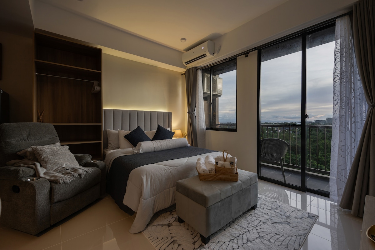 Kick back and relax in this calm, stylish studio unit near Mactan-Cebu International Airport! Inclusions: - Free access to the Pool and Gym - Towels and toiletries - Complimentary Coffee - Hairdryer - Clothes iron - Extra bed linens (upon request) - Wi-Fi About our space: - Pet-friendly - 32 sqm with a balcony facing the pool - Queen-sized bed with 2 bedside outlets - Work desk - Hot and cold shower - Dining area - Smart TV with Netflix - Wardrobe - Kitchen - Washing Machine