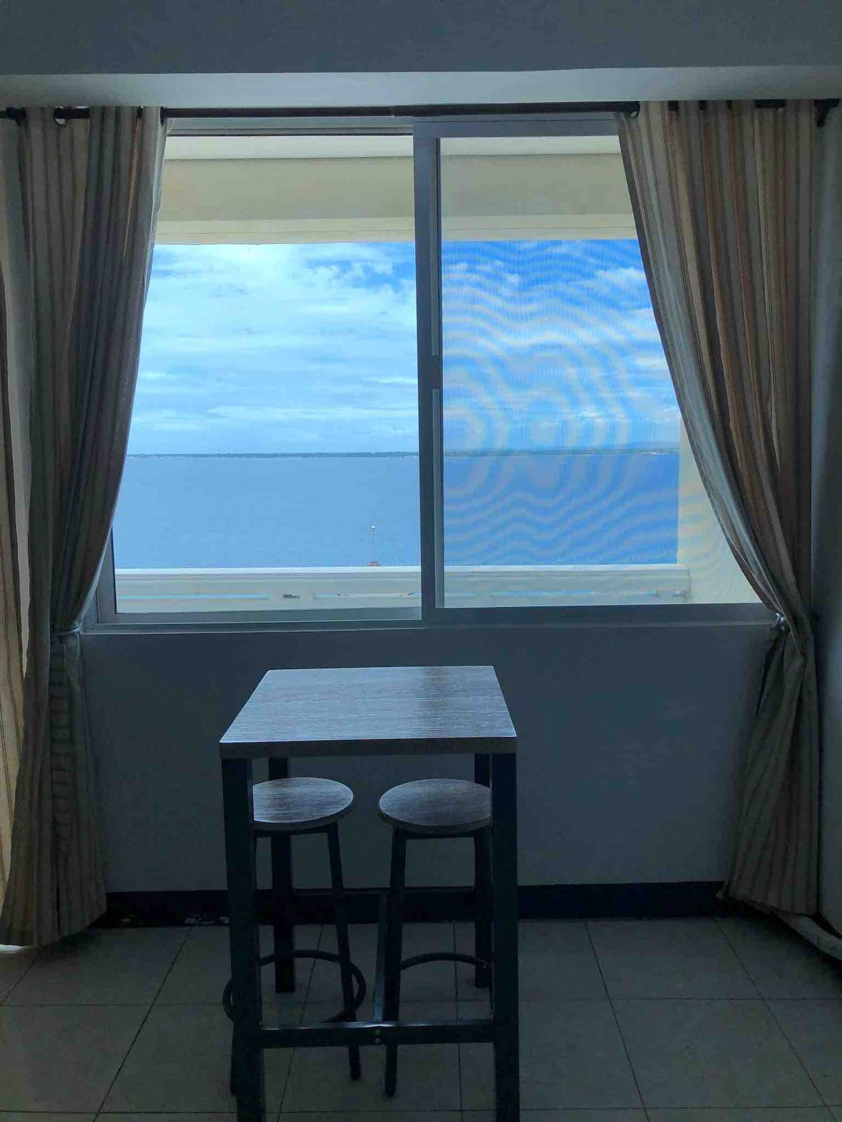 This comfortable and lovely 1BR Suite is your home away from home. Located on the high floor where you will find peace and tranquility, watching the sunrise and sunset in your own private patio. The patio has a view of the sea and lush greenery. All furnitures were meticulously picked and thoughtfully arranged to provide a homey feeling to all our guests. It is also equipped with high-speed internet, 55" smart TV in the living room, 43" in the bedroom and fully equipped kitchen.