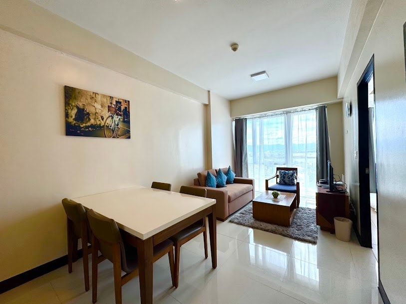Executive studio for 2 people 15 minutes to Airport Quality Queen Bed Free Drinking Water-Japanese Dispenser Wi-Fi/SmartTV/Free Netflix Lockable Safe Smart Lock access Hot Shower, Bidet Fully Equipped Kitchen Balcony,Seaviews&Breezes Gordon Ramsay/Japan/Korean Restaurants,Concierge,Pool,24hrSecurity Supermarket,7/11,Bakery,Starbucks,McDonald’s,Pharmacy,ATMs 400m walk to Beach, Beach Passes Php350/person daily NOTE:Up to 16 hr daily Construction/Noise is next door. Discounted daily rate is 30%