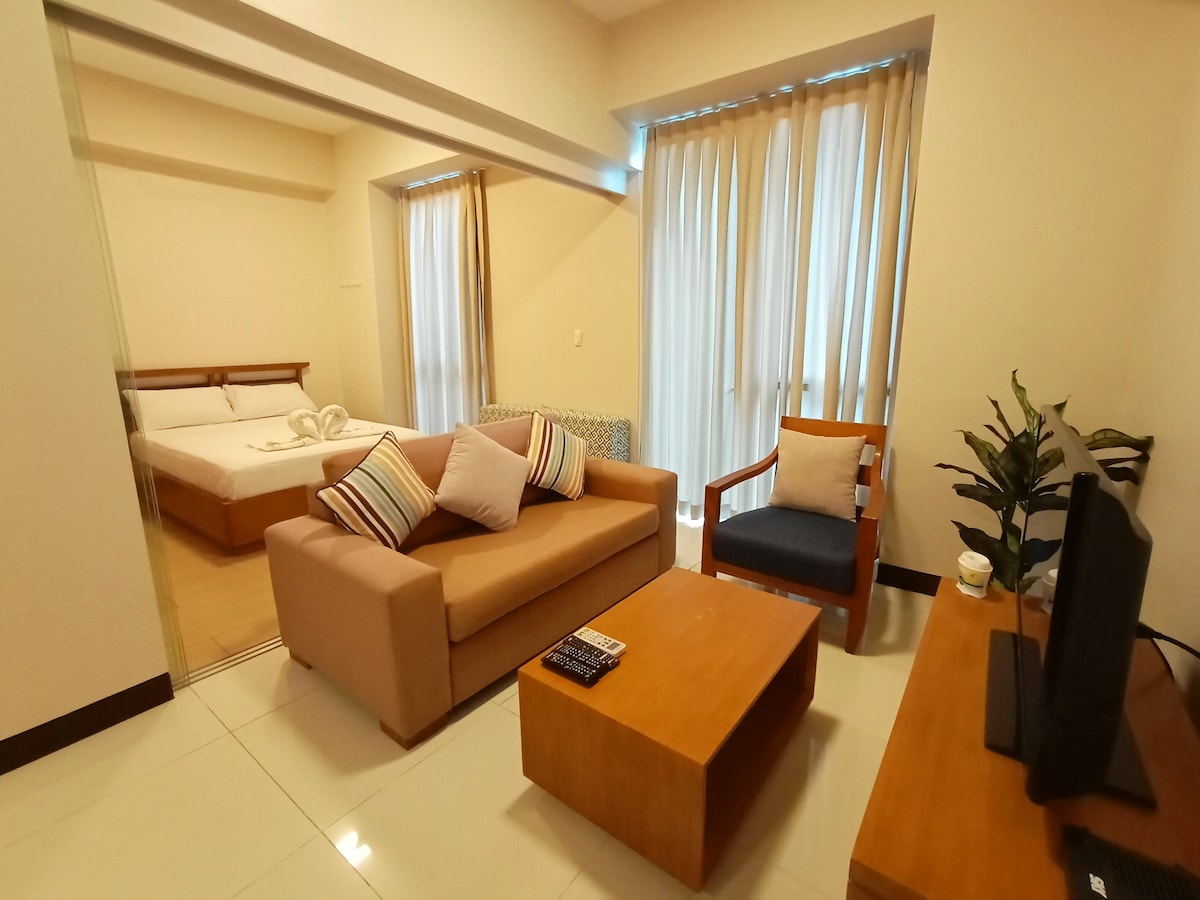 Executive studio for 2 people 15 minutes to Airport Quality Queen Bed Free Drinking Water-Japanese Dispenser Wi-Fi/SmartTV/Free Netflix Lockable Safe Smart Lock access Hot Shower, Bidet Fully Equipped Kitchen Balcony,Seaviews&Breezes Gordon Ramsay/Japan/Korean Restaurants,Concierge,Pool,24hrSecurity Supermarket,7/11,Bakery,Starbucks,McDonald’s,Pharmacy,ATMs 400m walk to Beach, Beach Passes Php350/person daily NOTE:Up to 16 hr daily Construction/Noise is next door. Discounted daily rate is 30%
