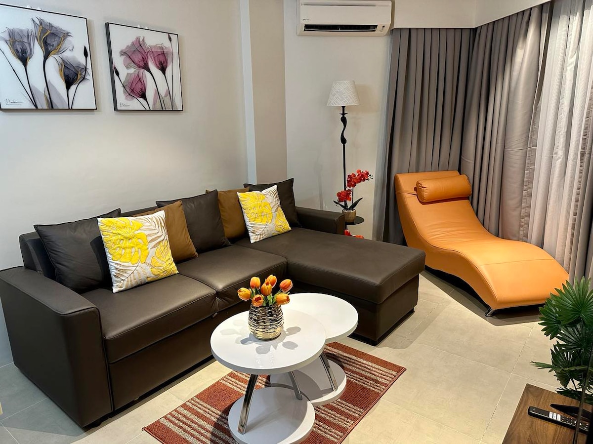 No detail is overlooked at this charming and upscale place to stay. A one bedroom suite inOne Manchester place with a beautiful finish and cozy feel bedroom and a living room that is convertible to a bedroom. Overlooking the beautiful Condos and hotels in Mactan Newtown and right in front of groceries, restaurants, bars, pharmacy and coffee shops. Enjoy the pool, spa and game room within and beach which is only a 5 minute walk. A perfect staycation. You don't need to worry about anything.