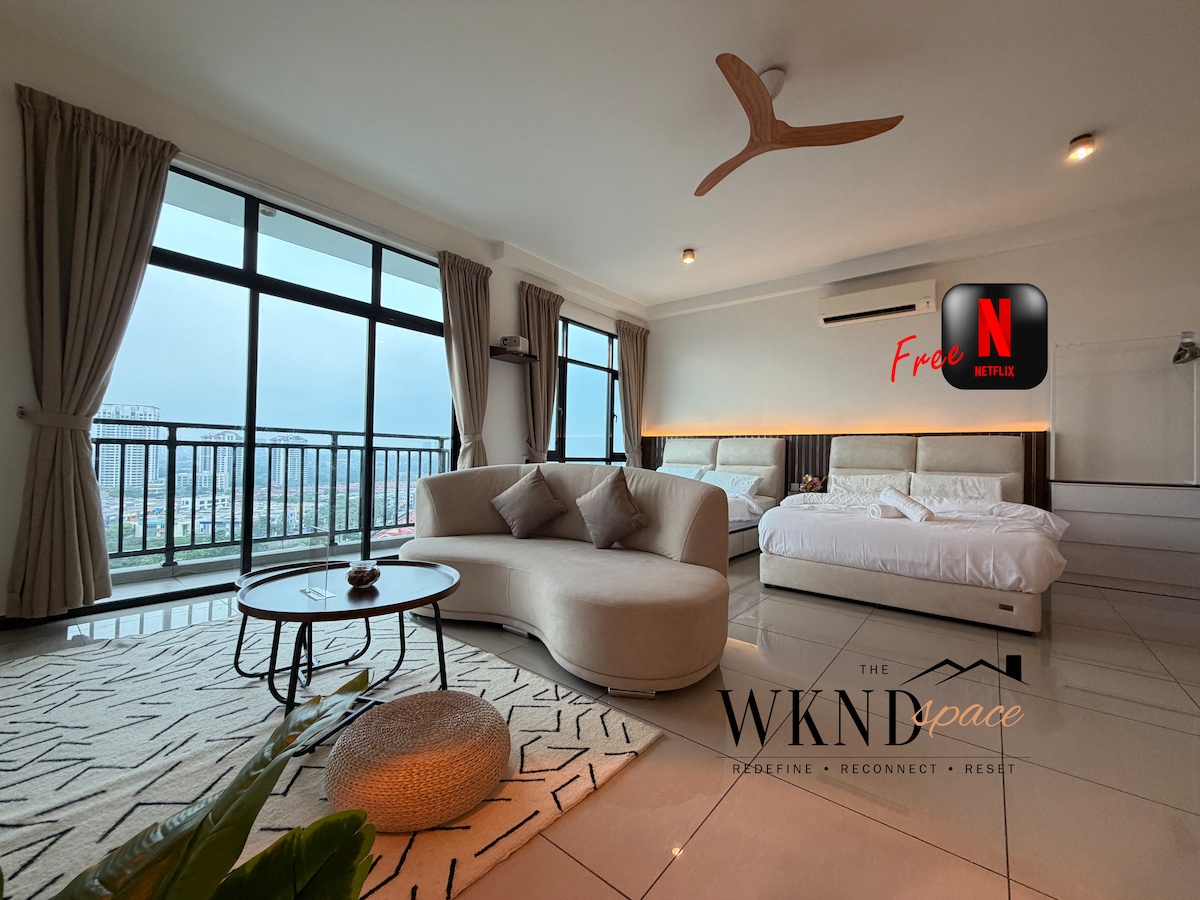 This is a spacious 2Bedroom unit perfectly fit for guests up to 5 pax with total of 1 king size bed 1 queen size bed 1 single bed High floor with high view. 1. Basketball Court 1. Gym Room 2. Function Hall 3. Lounge 4. Library 5. Manicure Shop 6. Mini Theatre 7. BBQ Deck 8. Swimming Pool 9. Sauna 10. Jacuzzi 11. Game room (Pool Table, PS Room, Darts and more) 12. Laundry 13. Mini Market -Sky Garden Guest are not allow to smoke in the room , please smoke at the balcony if needed