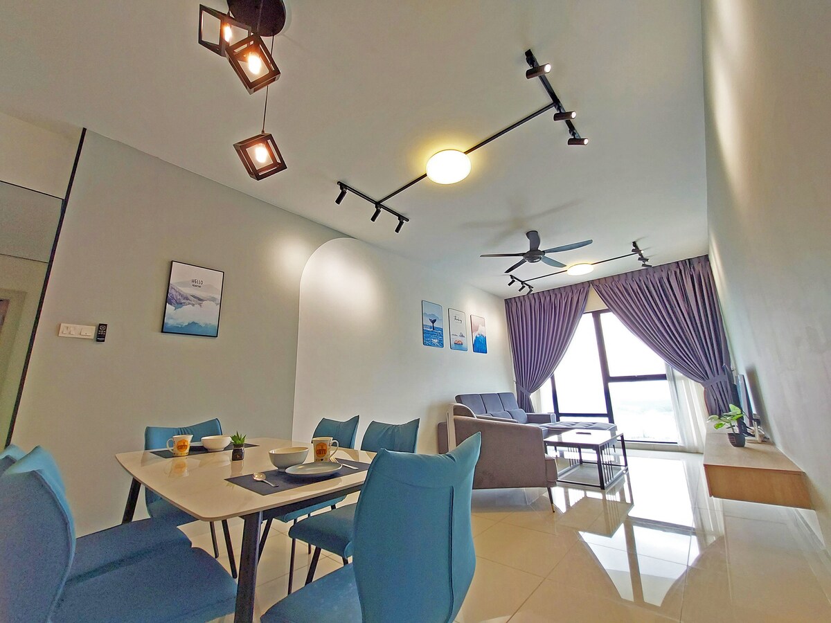 Luxurious spacious 3-Bedrooms unit with Bathtub! Premium quality King & Queen size Beds that guarantee good sleep here with amazing Midvalley Southkey Mall view! Main Highlight! -Private Bathtub -65" Smart TV with YouTube and Netflix apps -Pool Table -Retro Game Console -Drinking water Dispenser Surround with shopping mall & wide range of local tasty food - 2 mins drive to Midvalley Southkey JB - 5 mins to KSL City Mall - 8 mins to City Square Mall & Custom JB