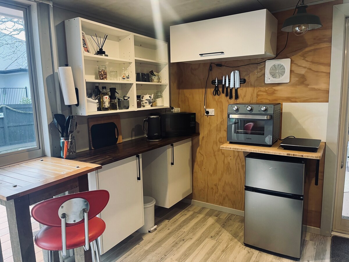 Beautiful, sunny, lovingly built, modern self contained studio. Everything you could need for a short stay in Christchurch; located in a quiet cul-de-sac less than 12 minutes from the airport, and 18 minutes to city centre. Fast WiFi, Smart TV with Netflix, private bathroom with high pressure shower, kitchenette with mini fridge, Nespresso coffee machine, jug and toaster. Cereals and milk provided for breakfast. Private access and your own private deck on which to relax outdoors