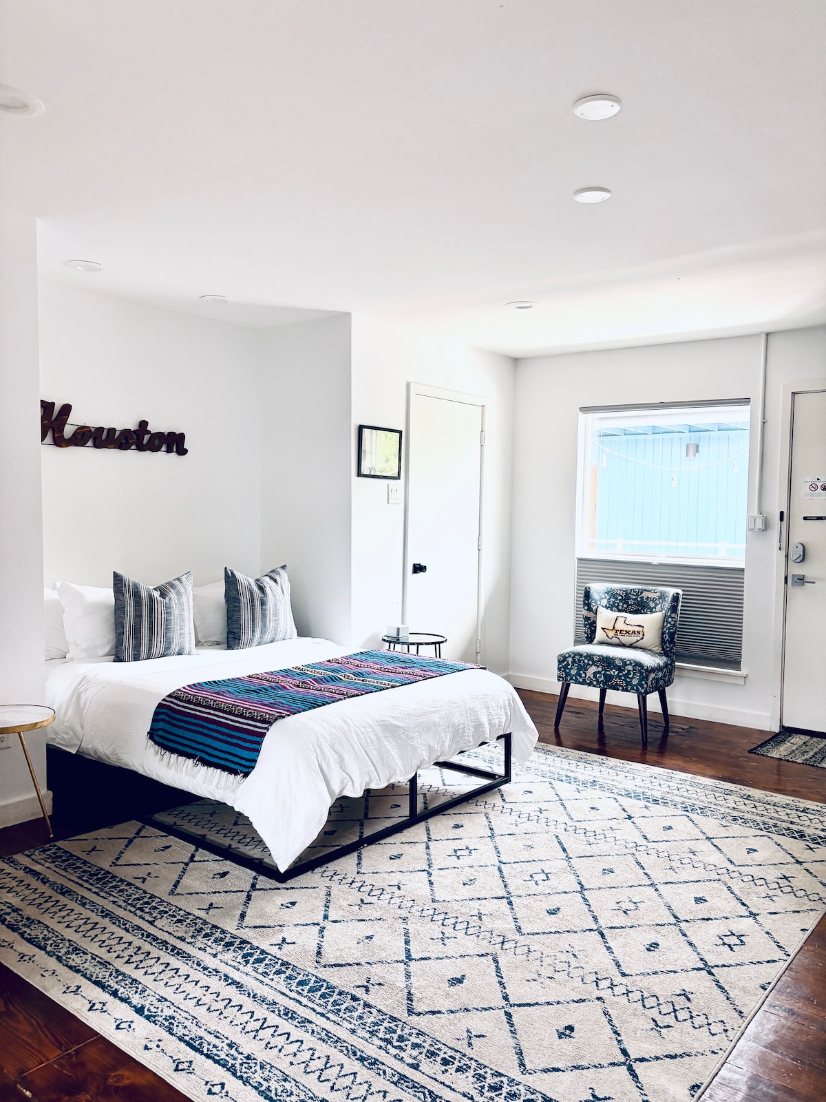 The Rustic (#3): Spacious, chic, impeccably designed studio in a newly-remodeled complex of 7 distinct, state-of-the-art apartments with brand new EVERYTHING. The Rustic is one of 2 large anchor studios with a full kitchen & separate living & sleeping areas. Plush, king-sized mattress & bedding; homey, comfy decor; ample lighting; smart technology; brand-new appliances. Amazing centrally-located neighborhood just steps away from some of Houston's best restaurants & nightlife...