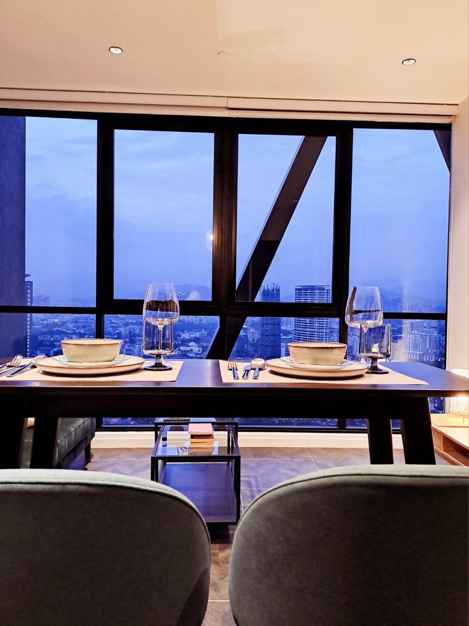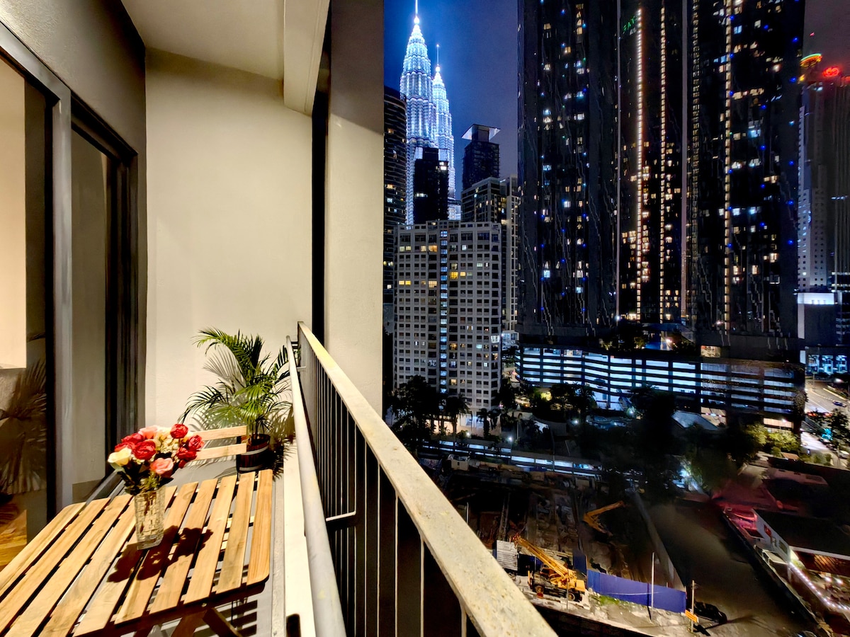 Stylish 1BR sky suite with a private balcony facing KLCC and KL Tower. Enjoy sky dining from your balcony while watching the dazzling light shows from both iconic towers every night. King bed, rain shower, full kitchen, washer with drying rack, Netflix, high-speed WiFi. Relax at the infinity pool, rooftop jacuzzi, and gym. Walk to Jalan Alor, Pavilion, Bukit Bintang, and the new TRX Mall. 24-hour check-in. Airport pickups and local tours available. Your perfect KL stay begins here!