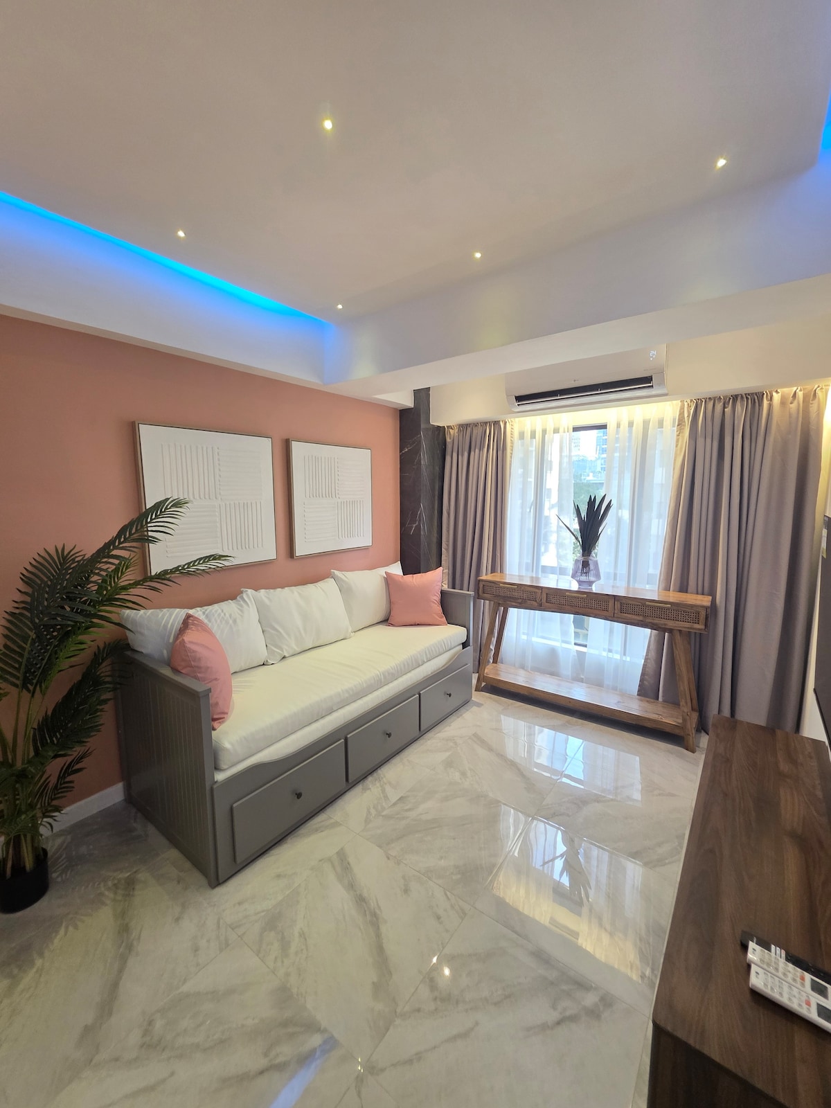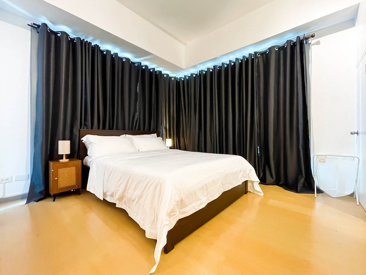 Book this luxury stay at the center of BGC. Everything is just a few steps away. Prime offices and high end malls surround Uptown Parksuites. Experience a cosmopolitan getaway at the Uptown Mall. Explore unique food and shopping concepts. Party the night away at premier bars right at your doorstep. Unwind in our Mid Century Modern bedroom unit. Relax in a queen sized bed plus an extra sofa bed. Comforts include a 55 inch SMART TV, 400 MBPS internet, study area and private balcony.