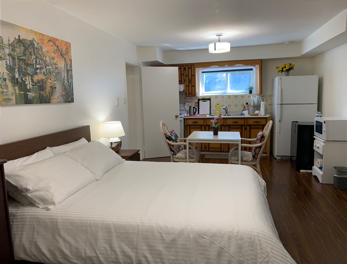 Cozy and spacious basement suite in Port Credit. Separate entrance, Private kitchen&3-piece bathroom. The bedroom includes a comfortable queen bed and desk, perfect for relaxing or working. Fast Wi-Fi and driveway parking are included, and laundry is available on the property. A short walk to the bus stop provides easy access to Port Credit GO Station and Square One, with Sherway Gardens and Dixie Outlet nearby. The space is carefully cleaned and thoughtfully prepared for a safe, welcoming stay.
