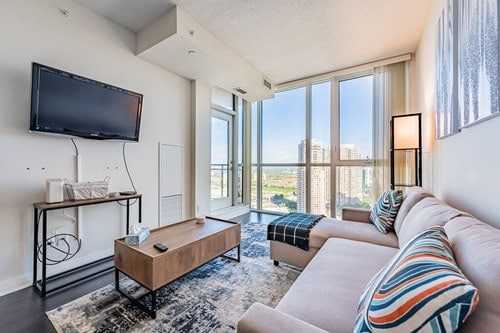 Just an 8-minute walk to Square One Mall, this cozy condo is perfectly located — 15 minutes from Pearson Airport, with easy access to highways and public transit. Downtown Toronto is just a 30-minute drive away (traffic permitting). Inside, you’ll find a comfortable bed, a private terrace to relax on, and the convenience of one free designated parking spot included with your stay.