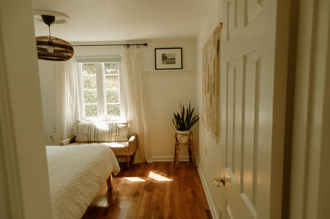 A picturesque two-bedroom cottage approached by a secluded road sits on a hill with stunning views of rolling lawns and treetops to the east. You’ll wake to the sunrise light streaming through the tall picture windows in the romantic bedroom. The separate living room offers ample space to relax with a good book and enjoy tea and cake! The adorable second bedroom provides a special place for children to feel right at home, or a private spot to unwind.