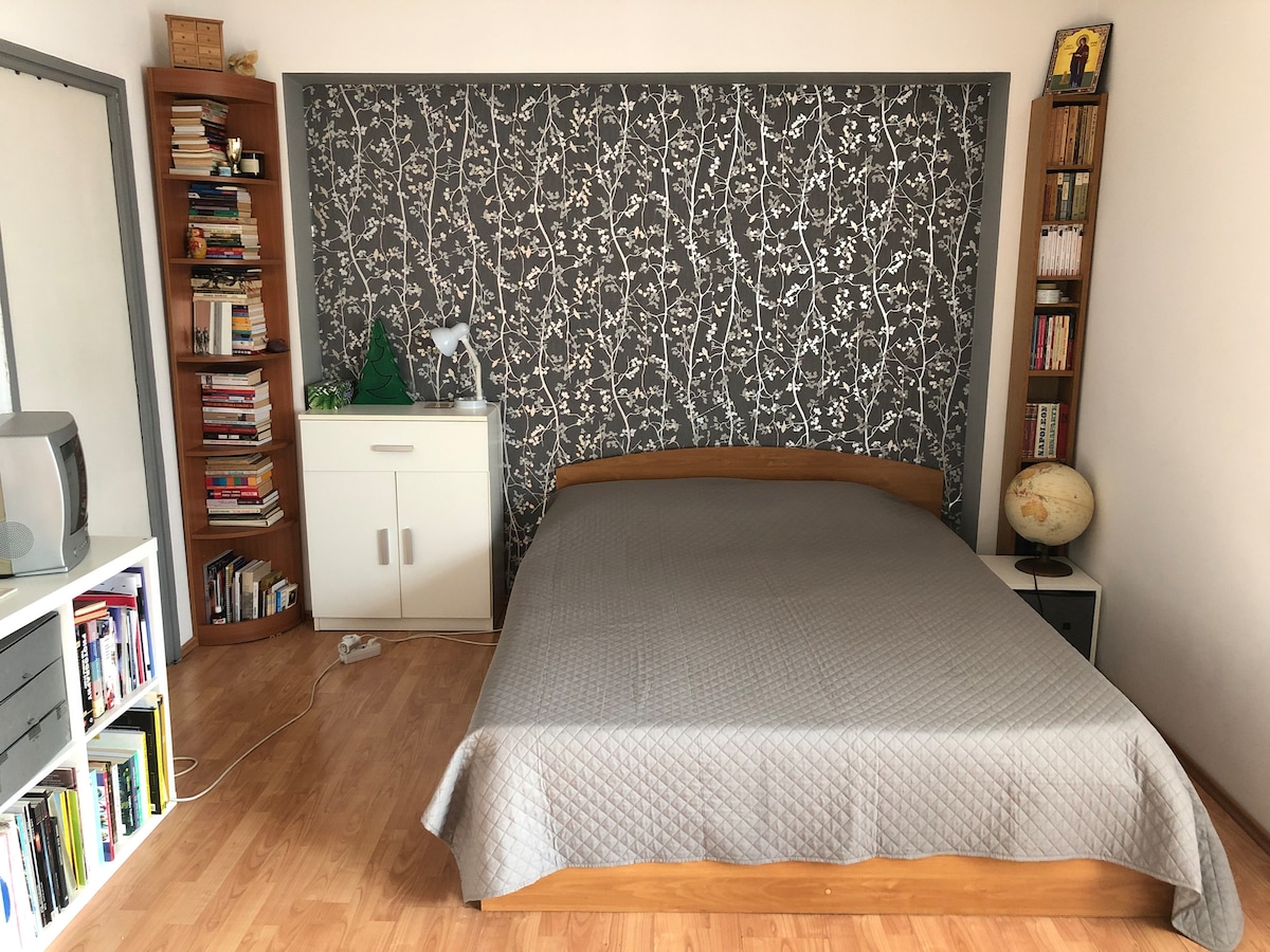Kick back and relax in this calm, stylish space or find a new home to work from :) Lovely studio in a beautiful houses neighborhood, next to Parcul National and Arena Nationala, 5 min away by walking from "Piata Muncii" subway station, 20 min away by public transportation to Piata Unirii and Downtown. Close to restaurants and coffee shops and a 24 hours grocery store, Mega Image. Have no worries about your schedule with the self check-in system.