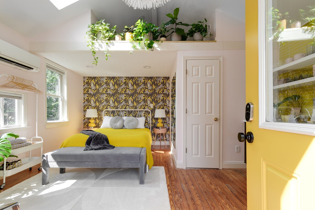 Welcome to the Yellow Tiger’s Den, a private, tucked-away guesthouse filled with bold color, thoughtful design, and a little Richmond edge. Set above a spiral staircase for total privacy, this sunny studio blends mid-century modern style with curated yellow accents, a cozy private patio, and everything you need for a relaxed stay. Located in Richmond’s historic Battery Park neighborhood, you’re minutes from the city’s growing food scene, local attractions, and easy highway access.