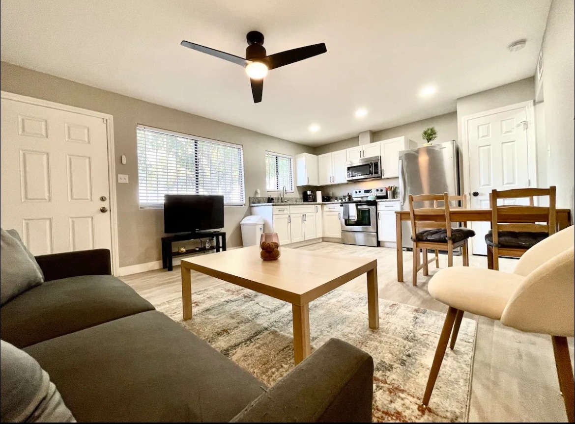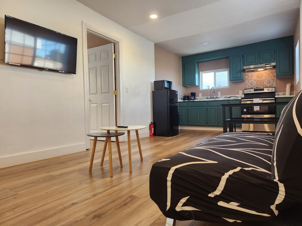 Escape to Tropical Vibes in the Desert 🌴 — a modern private studio just 15 min from the Strip & Downtown. Enjoy a King bed, full kitchen, stylish dining area, cozy sofa, Smart TV, remodeled bathroom, washer/dryer & private patio. Includes free parking, high-speed WiFi & exclusive free entry to top Vegas nightclubs & pool parties. Perfect for couples, business trips, or remote work — blending comfort, privacy & the best of Las Vegas nightlife.