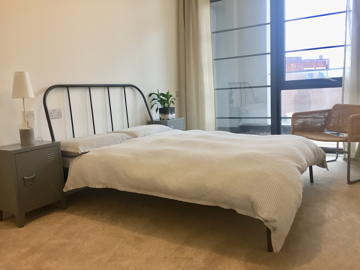 现代金丝雀码头公寓-舒适的超大双人床