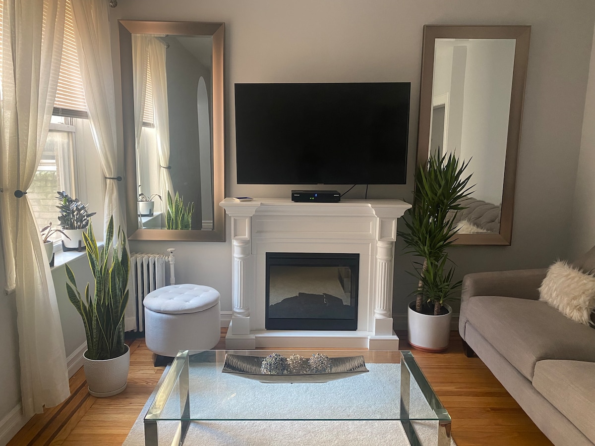 Welcome to our luxurious apartment featuring stylish green and gold decor and modern furniture. Enjoy breathtaking NYC views from your window, especially stunning at night. ✔ Free parking in building lot ✔ Smart TV ✔ High-Speed 300 mbps WiFi ✔ Bathroom Toiletries Provided ✔ Fully- Equipped Kitchen ✔ Washer, Dryer on same floor ✔ Indoor Fireplace