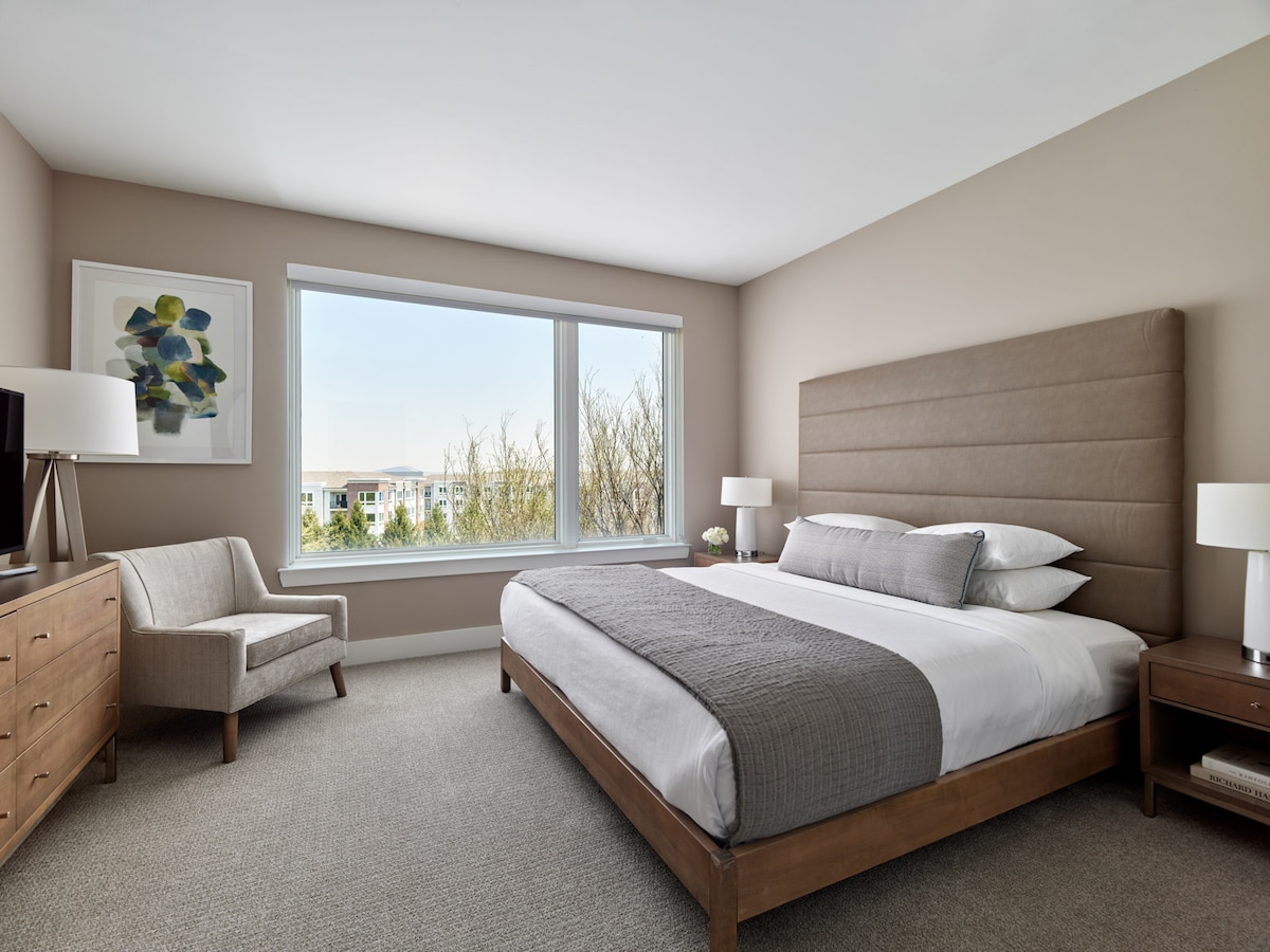 Designer King 1BR Near NYC | Parking, Pool & Gym