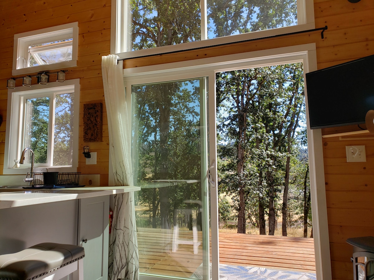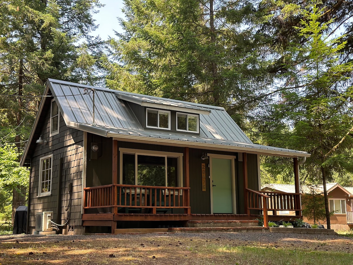 Tiny House Guest Cottage one mile off 213 near Marquam. Remote, yet accessible. 10 minutes from Mt. Angel and Molalla. 15 minutes from Silverton. 18 minutes from Oregon Garden. Loft with King size bed and luxurious sheets. Two sofas downstairs can be converted into beds. Not suitable for children. Sit on the back patio in the evening and listen to owls, coyotes, frogs, and crickets. Dozens of species of birds. I am proud of the reviews guests have left; please read them for more info.