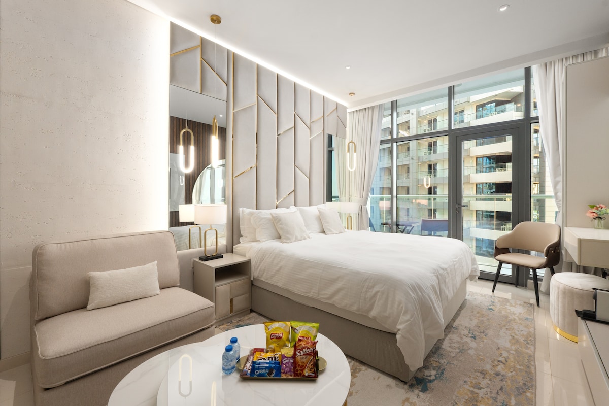 Welcome to LUX | The Palace Beach Suite. Discover luxury living at Emaar Beachfront, Dubai. This elegant apartment boasts breath-taking views, a sunlit living area, a modern kitchen, and serene bedrooms with floor-to-ceiling windows. Enjoy world-class amenities including an infinity pool, private beach, and fitness center. Perfectly located, it offers easy access to Dubai's finest dining, shopping, and entertainment.