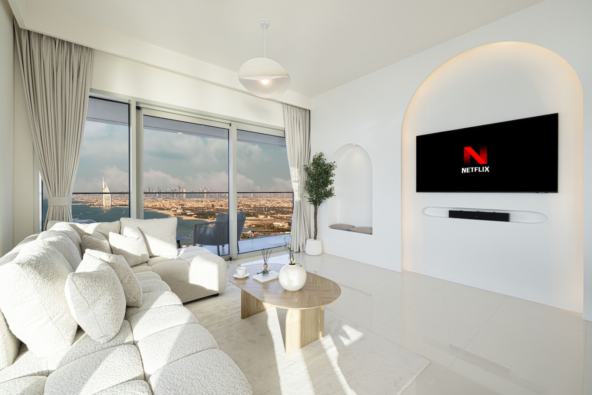 Imagine waking up to the gentle sound of waves and breathtaking panoramic sea views from your private balcony. This is merely a dream—its your daily reality in our exquisitely designed one-bedroom apartment on the iconic Palm Jumeirah. Perfect for couples seeking a romantic getaway or solo travellers desiring an upscale retreat, this coastal haven is available now for your unforgettable Dubai experience.