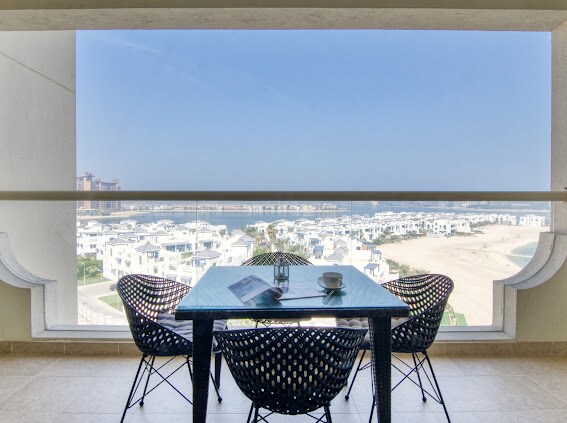 Escape to our stunning, boho-inspired beachfront studio apartment on the iconic Palm Jumeirah. Wake up to breath taking views of the golden sands with sparkling blue sea and the famous Burj al Arab & Dubai skyline. Enjoy direct access to the beach with great recreational activities just steps away from your front door. Whether you're looking to relax by the sea, explore the city's vibrant culture, or unwind and enjoy Club Vista Mare's stylish cafes,restaurants & bars our apartment offers it all!