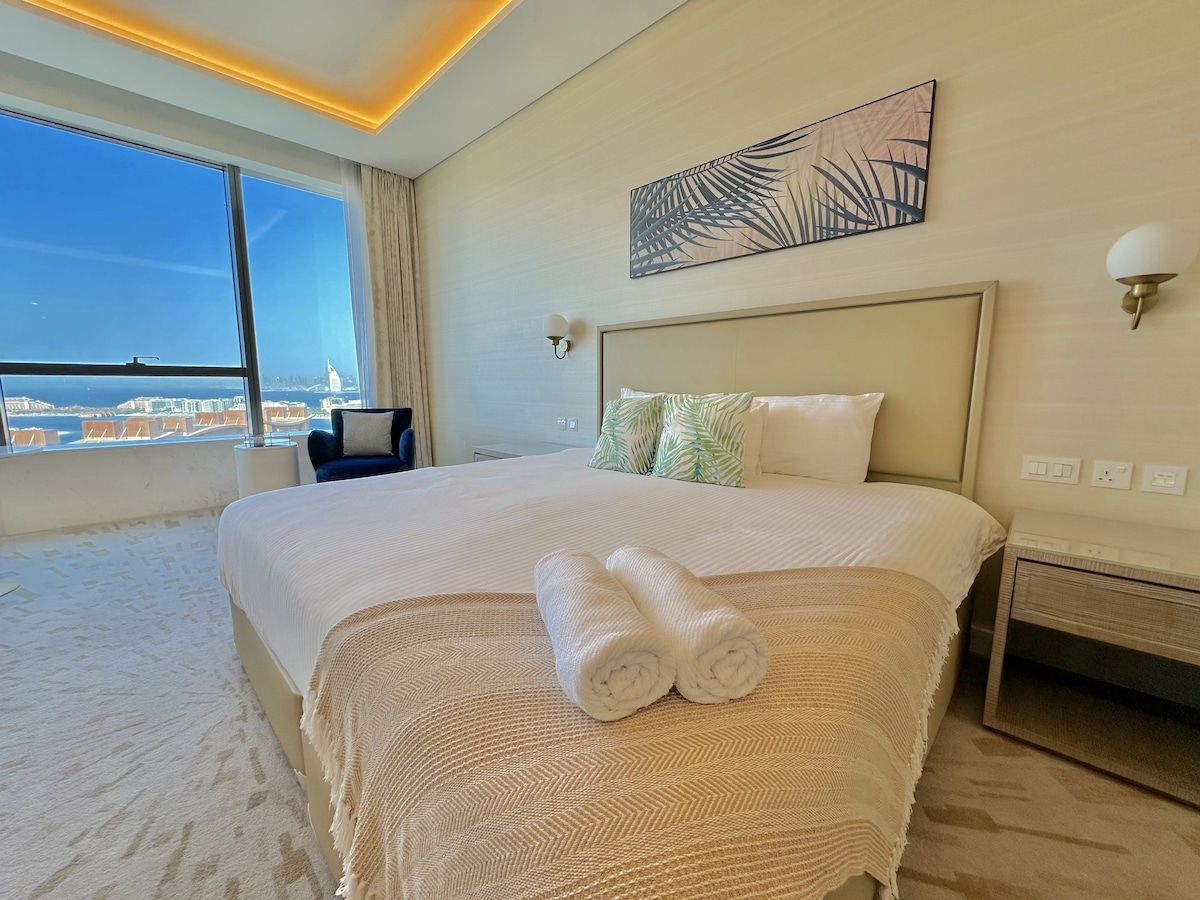 Experience all the splendor of Dubai, and rest comfortably inside our upgraded luxury studio with Netflix, located next to Nakheel Mall at the Palm. Take in the breathtaking views from your private balcony, and enjoy access to the best landmarks, dining, free beach access, and experiences the city has to offer. Unwind at the luxury fitness area or take a refreshing dip in the 25-meter swimming pool. If you value freshness, take advantage of our free cleaning service, available twice a week.