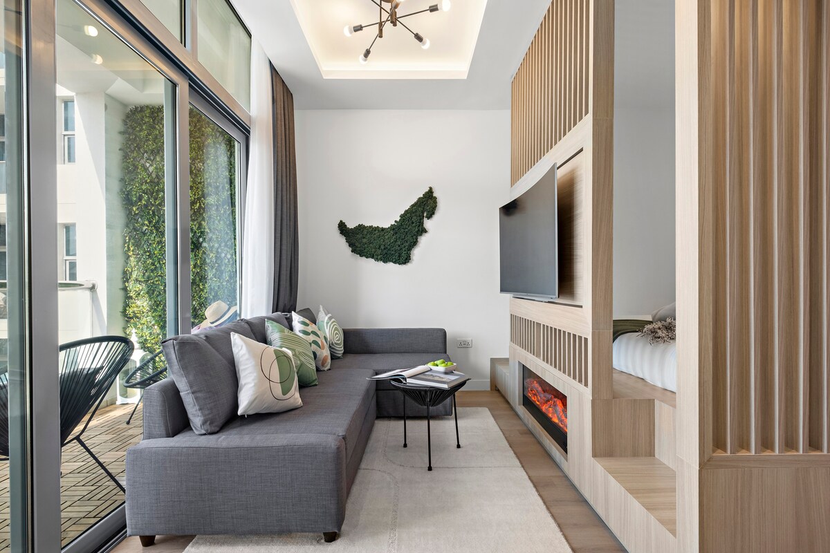 Located within walking distance to Dubai's famous Jumeirah Beach, the Dubai Metro and a 5 minute drive to Marina Mall, our apartment is well located to many attractions in Dubai Marina. The studio is the perfect choice for couples, friends or small families to explore the destination, whilst enjoying a fully equipped apartment. Our cozy, "Eco Design" studio apartment has been completely renovated and features flexible bedding options, children amenities, rotating TV, full kitchen and fireplace!