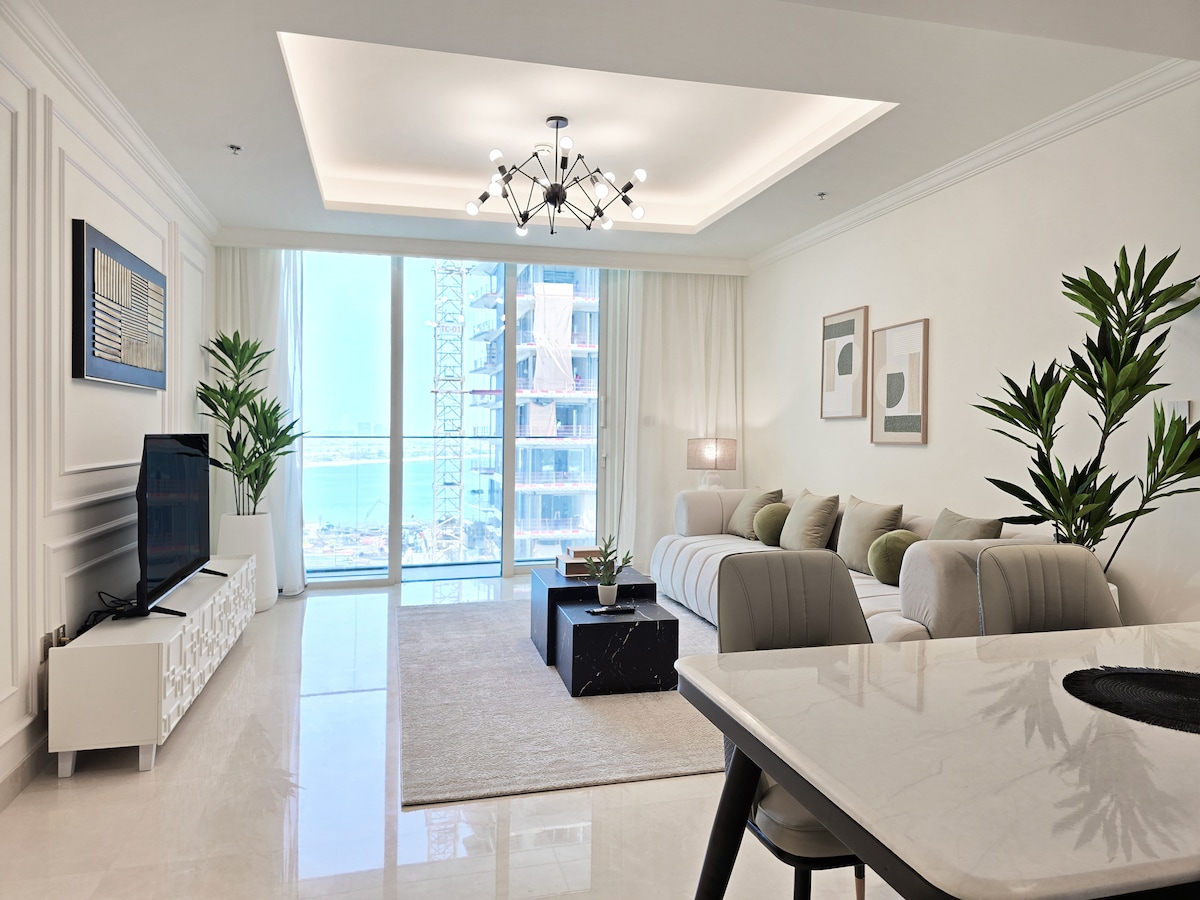 Indulge in luxury at this elegant 2-bedroom apartment in Beach Vista, Emaar Beachfront. Soak in stunning views of the iconic Palm Jumeirah from your private balcony. This stylish home features modern furnishings, a fully equipped kitchen, bright living space, and two comfortable bedrooms. Enjoy resort-style amenities including a private beach, pool, and gym. Perfect for families, couples, or professionals seeking a premium seaside escape in Dubai.