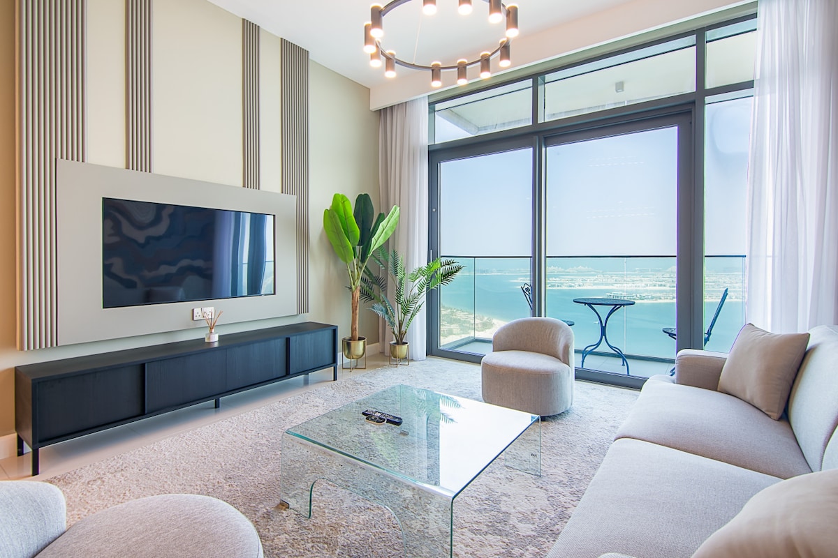 This modern 1-BDR apartment is located in Seven Palm Residences, just steps away from the beach, Nakheel Mall, and the famous West Beach promenade. 📍 Location highlights: • 2 min walk to the beach • 5 min walk to Nakheel Mall • 10 min drive to Dubai Marina • 25 min drive to Downtown Dubai Guests have access to the rooftop infinity pool, gym, and private beach, offering the perfect balance of relaxation and Dubai luxury..Making it the perfect home away from home in Palm Jumeirah.