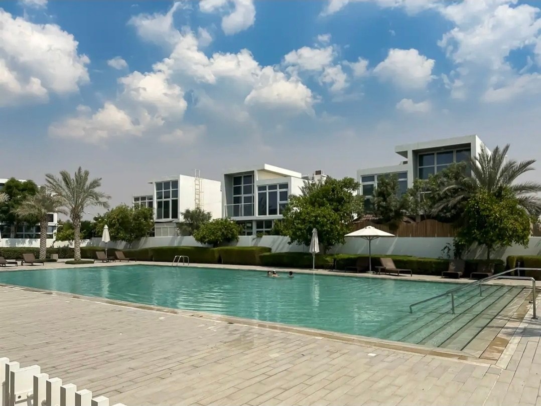 Villa de luxe idéale pour familles et groupes recherchant calme et confort à Dubaï. Elle offre 5 suites avec salle de bain privée, des espaces lumineux et une cuisine équipée. À l’extérieur, piscine privée chauffée en hiver et rafraîchie en été, coin détente et barbecue. Quartier résidentiel calme proche des attractions. Femme de ménage sur place dans logement indépendant, discrète. 4 places de parking privées. Séjour confortable et reposant toute l’année, parfait pour vacances réussie.