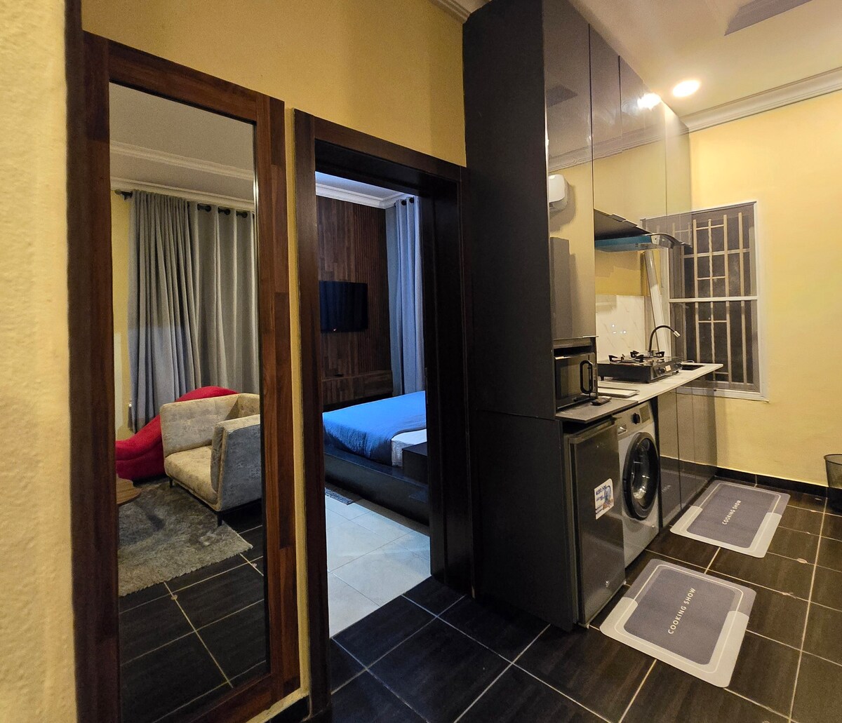 Welcome to Studio Haven, a cozy urban retreat in the heart of the city! This stylish studio apartment blends modern comfort with warm, inviting vibes. Enjoy a plush bed, soft linens, and a compact yet fully equipped kitchenette. The living area features a smart TV and free Wi-Fi, perfect for relaxing or working. Steps from vibrant cafes, shops, and transit, this haven offers the perfect base for your city adventure right in the heart of Lekki phase 1