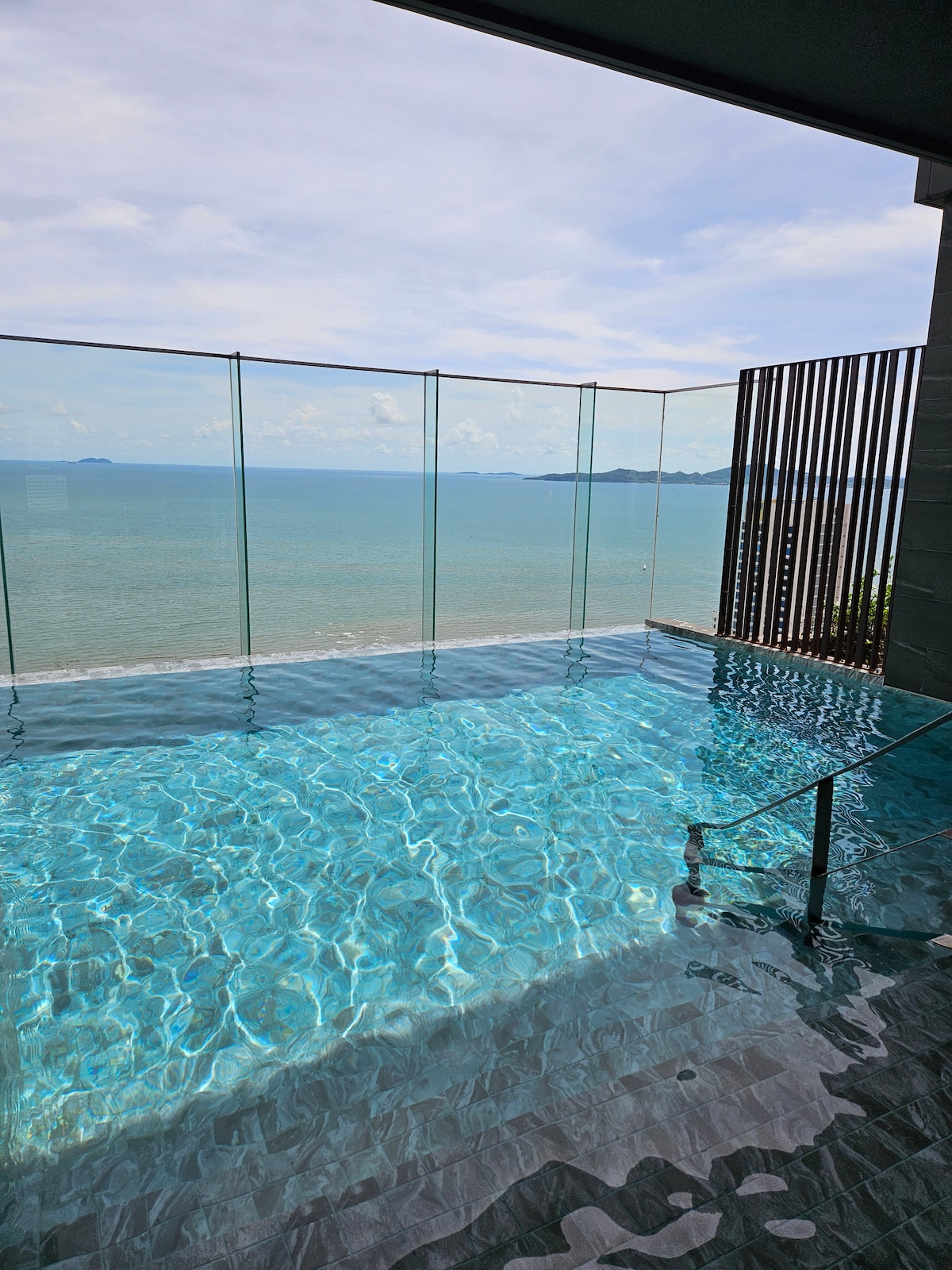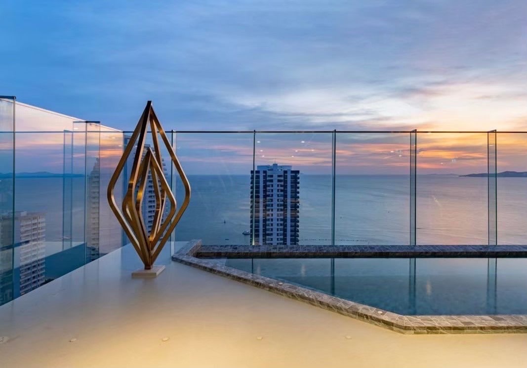 Brand New Panora Pattaya Penthouse with 270° stunning sea views, and modern amenities. Enjoy an infinity pool, fitness center, work and sitting areas, and just 250m to the beach. Located in a vibrant area with restaurants, cafes, massages, supermarkets, and sea sports. Only 1 minute to Jomtien Beach Road and 5 minutes to Walking Street. Brand new, fully equipped with kitchenette, washing machine, and an outdoor balcony bathtub to unwind with epic sunsets. Perfect blend of luxury and convenience.