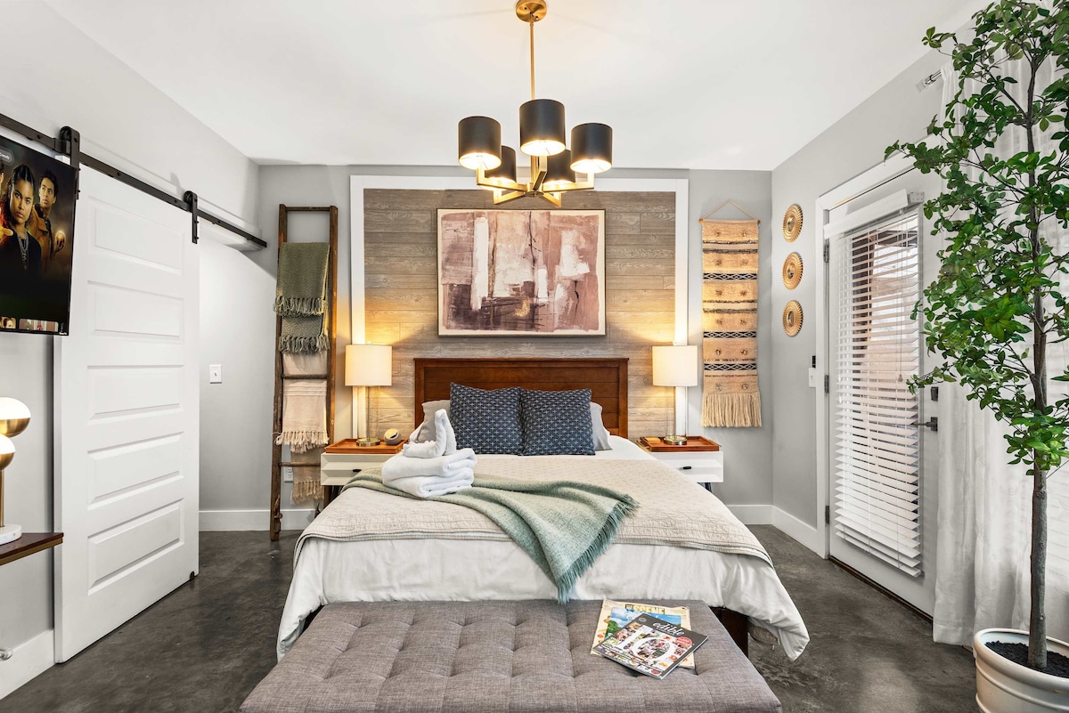 This professionally designed studio is minutes from Nashville’s top venues and just 2 miles from Broadway - perfect for concert nights and couples’ getaways. Guests often say this is one of the cleanest stays they’ve experienced, with thoughtful details that make it especially comfortable. Enjoy reserved parking, easy self check-in, a fully stocked coffee station, high-end finishes, a spacious walk-in shower, and a comfortable home base close to it all.