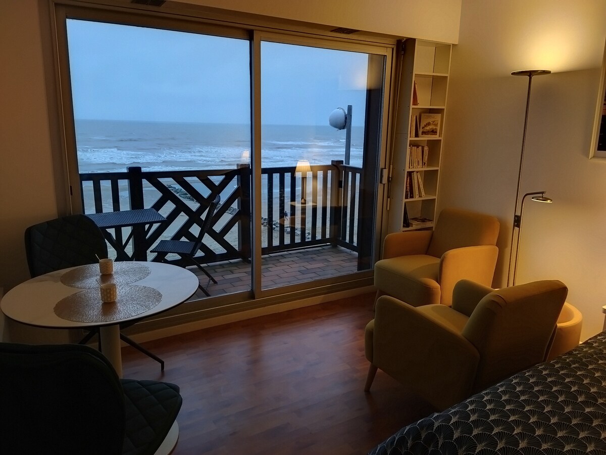 Très beau studio avec grande Terrasse Vue Mer. Situé dans une résidence à 10 minutes à pied du Centre de Trouville et de la Mer. - Entrée avec rangement - Séjour avec lit armoire grande largeur (160 cm) et matelas de qualité hôtelière, canapé vue mer, table basse, fauteuil de détente, TV Cable. WIFI. - Terrasse exposée Ouest (soleil l'après midi jusqu'au coucher du soleil que vous pourrez contempler depuis la terrasse) - Cuisine équipée - Salle de douche avec grande vasque, W.C.