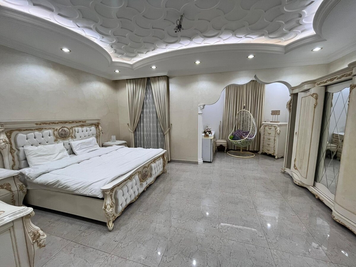 The villa consists of 3 floors. The room is located on the ground floor. It contains a double bed, Clothes hanger, work table, private bathroom, AC and Wi-Fi internet.The room has a private door with a lock. There are shared spaces for sitting and watching TV, and a shared kitchen on the same floor and first floor. Location : The Villa Near Lulu Hypermarket, and around a range of shops, metro and bus stations.