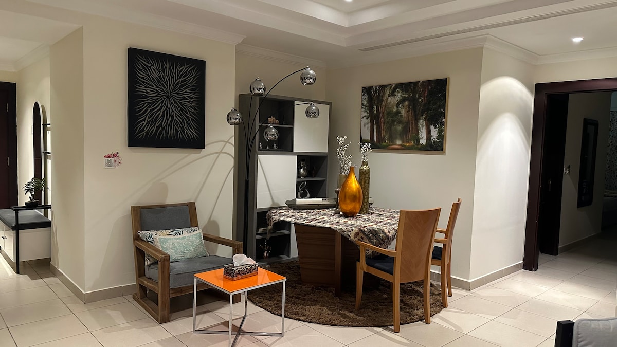 Governmentally licensed apartment for Hayya card application. Flexible customize sleeping arrangement up on request (Baby crib, Sofa bed) central to all World Cup Stadiums. Check in 24/7. Balcony with full Marina view. Smart TV with world Cup channel subscription. Fast Wifi. Free car parking for 2 cars and visitors parking available.