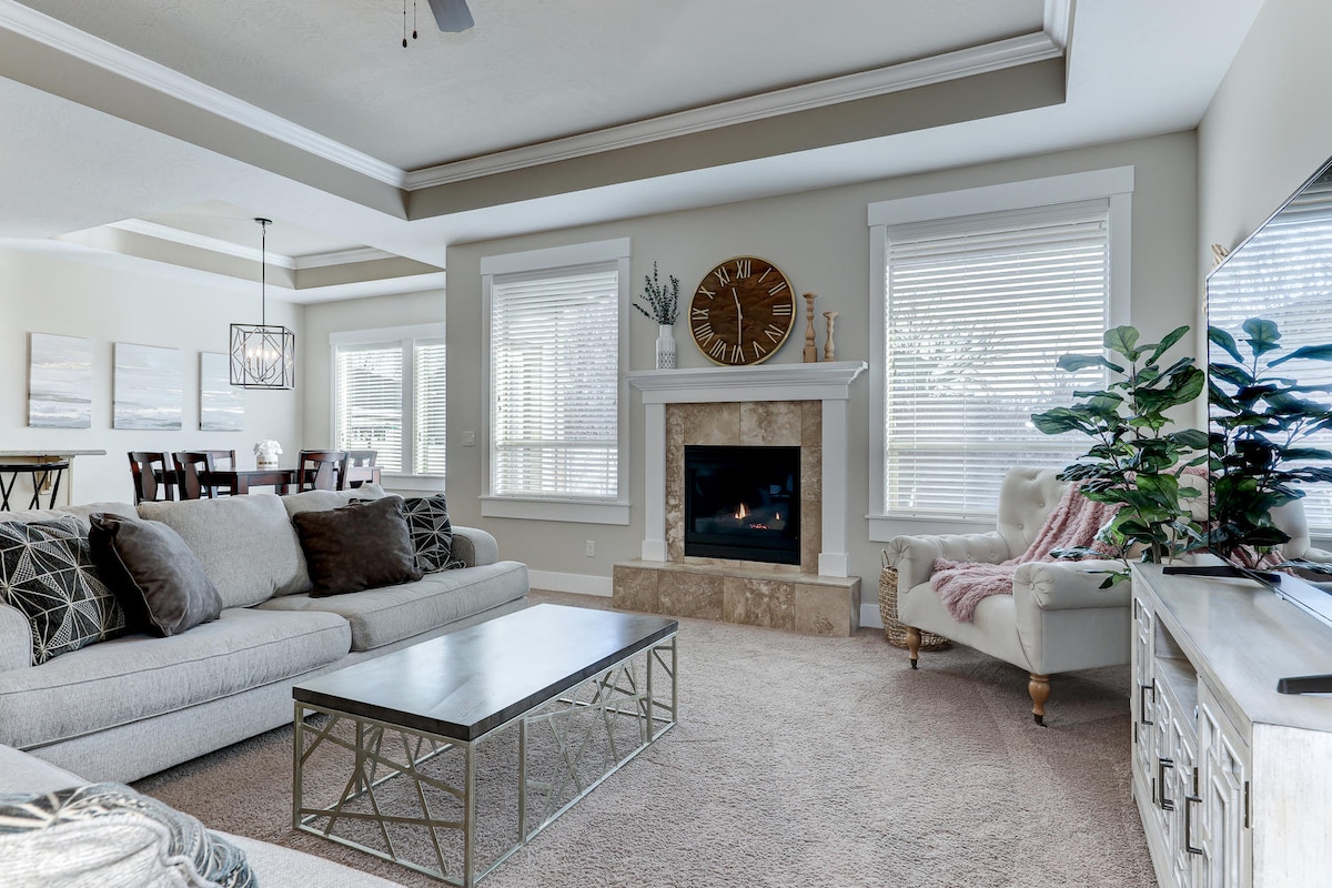 Quiet family friendly street 10 min. from airport. Equipped with full kitchen, 3 bedrooms (1 king, 1 queen, 1 full) & 2 full baths on main floor. There is a game room upstairs with couch, TV, foosball, Pac-Man, Wii, & board games. Backyard with grill & gas firepit. 3 car garage available for use along with driveway and st. parking. Smart TVs in living room, game room, and master with Youtube TV provided. Power all devices with 650 mbps Fiber Wifi. 2 pets allowed for a one time fee at booking.