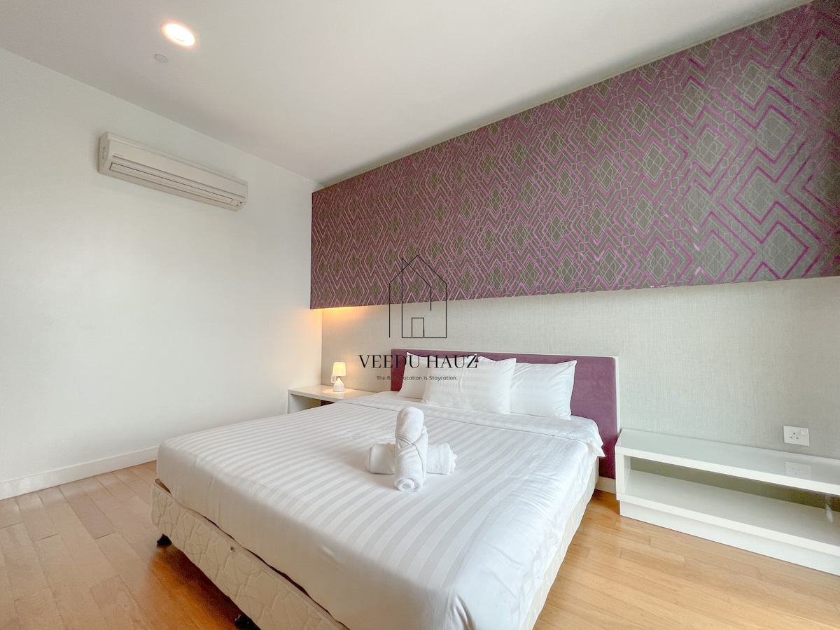The Calma is a peaceful 2BR retreat in the heart of KL city, located within the prestigious Platinum Suites. Rest under a dreamy canopy bed or unwind in a tatami-style room with Muji-inspired vibes. Designed with minimalist, artistic touches — perfect after a day exploring KL. Enjoy access to a stunning sky infinity pool with one of the best city and night views in KL. High-speed Wi-Fi and gym included. Just steps from the monorail. StayCalma — sleep well, explore better.