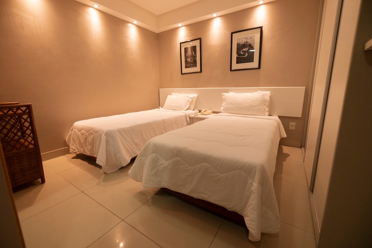 Apart decorado com vista magnífica da Baía de Todos-os-Santos, em Ondina, no circuíto do carnaval, perto do Farol da Barra e Rio Vermelho. Duas suítes com ar, sala, cozinha, Wi-Fi, serviço de camareira, recepção 24h e estacionamento rotativo na frete do Apart. Camas novas, roupa de cama e banho. Smart tv 43, geladeira, fogão, sofá-cama, micro-ondas, liquidificador, sanduicheira, cafeteiras: nespresso e arno e utencílios de cozinha. Piscinas, bar, padaria, retaurantes, lojas, galeria e salão.