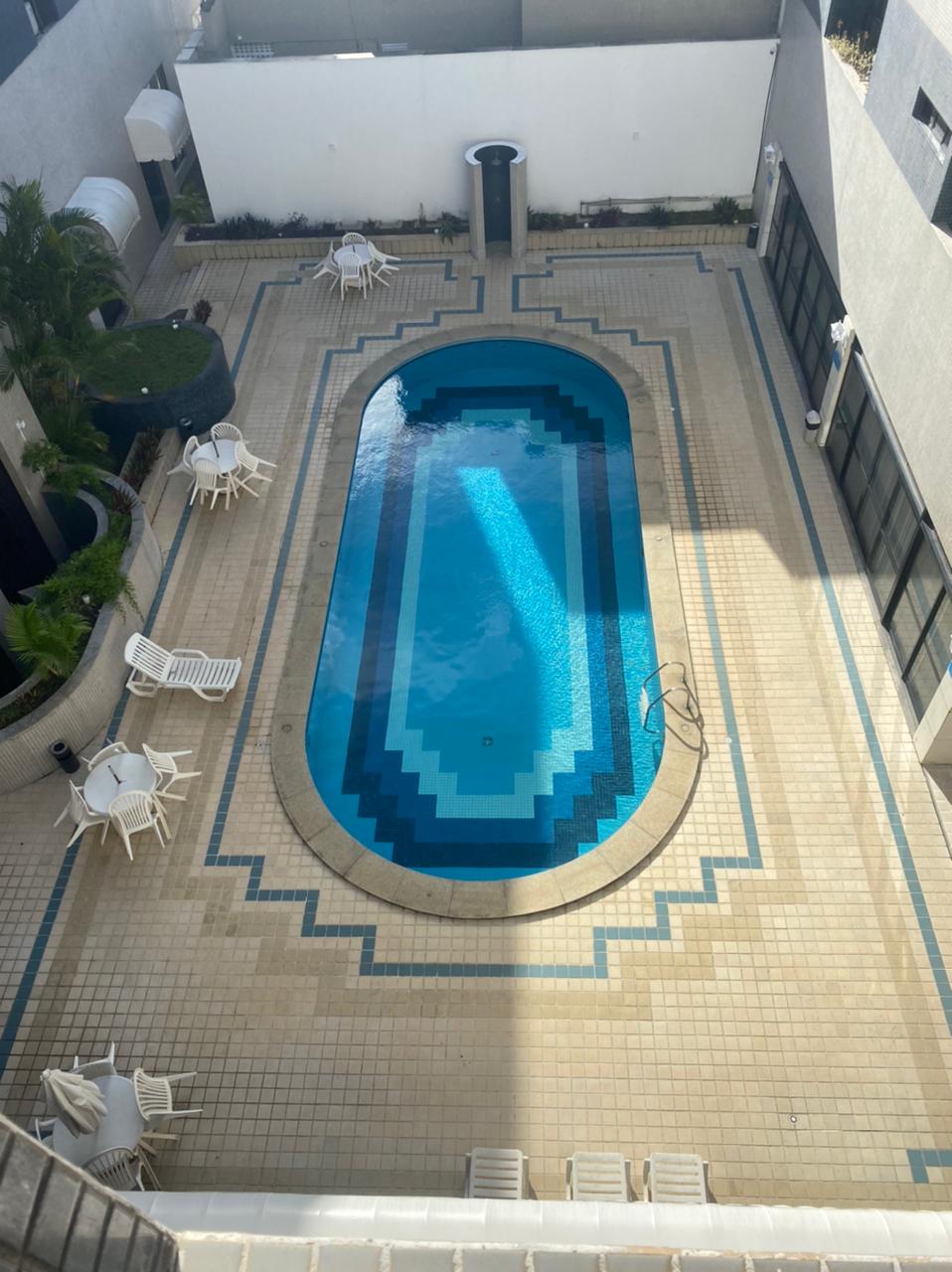 Apartamento mobiliado com total infra estrutura: limpeza diária, Piscina, elevador panorâmico, Estacionamento privativo já incluso na diária a 30mt da praia. Restaurante no Flat com refeições baratas. Suíte com ar condicionado split novo, 2 camas box de solteiro estilo hotel e frigobar. Na sala sofá cama casal, ar split, cozinha americana completa. Tv Smart e WI-FI. Farmácia, Casa lotérica, locação carro, Igreja, bancos, 500mt da UFBA, restaurantes. Piscina funcionando.