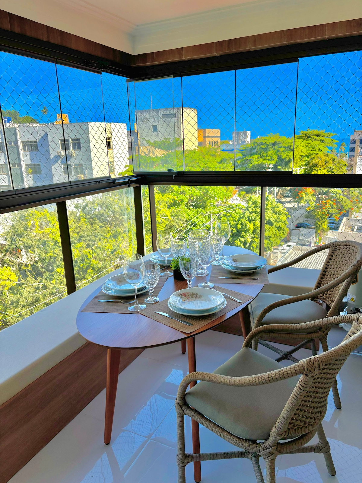 Apart decorado com vista magnífica da Baía de Todos-os-Santos, em Ondina, no circuíto do carnaval, perto do Farol da Barra e Rio Vermelho. Duas suítes com ar, sala, cozinha, Wi-Fi, serviço de camareira, recepção 24h e estacionamento rotativo na frete do Apart. Camas novas, roupa de cama e banho. Smart tv 43, geladeira, fogão, sofá-cama, micro-ondas, liquidificador, sanduicheira, cafeteiras: nespresso e arno e utencílios de cozinha. Piscinas, bar, padaria, retaurantes, lojas, galeria e salão.