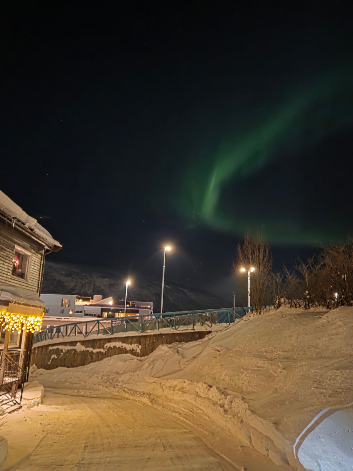 High quality furnished studio apartment in the city center, few minutes walk away from the main pedestrian, yet in a quiet and nice street. Close to grocery stores, restaurants and pickup for experiences. Kitchen and bathroom with all facilities. Very comfortable bed and a dining area in the living space. Perfect for solo travelers or couples. Access to a balcony (half) with beautiful views over the city skyline, the surrounding mountains and Northern Lights if weather conditions are met.
