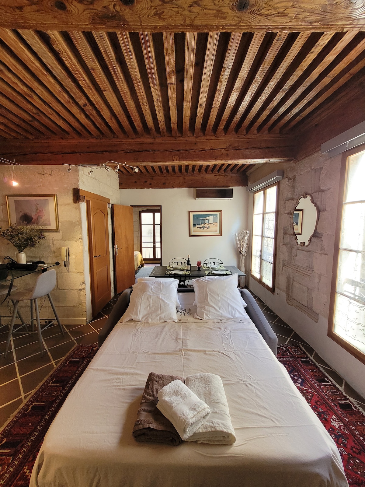 “Albert & Célestine” welcome you to the heart of Provence ! Welcome to Lourmarin! Located on the top floor of an old manor house steeped in history, our delightful, light-filled duplex offers superb panoramic views over the village rooftops. The apartment overlooks the lively main square with its cafés and restaurants. All you have to do is descend the stairs to enjoy breakfast on the terrace before setting off to discover the treasures of the Luberon...