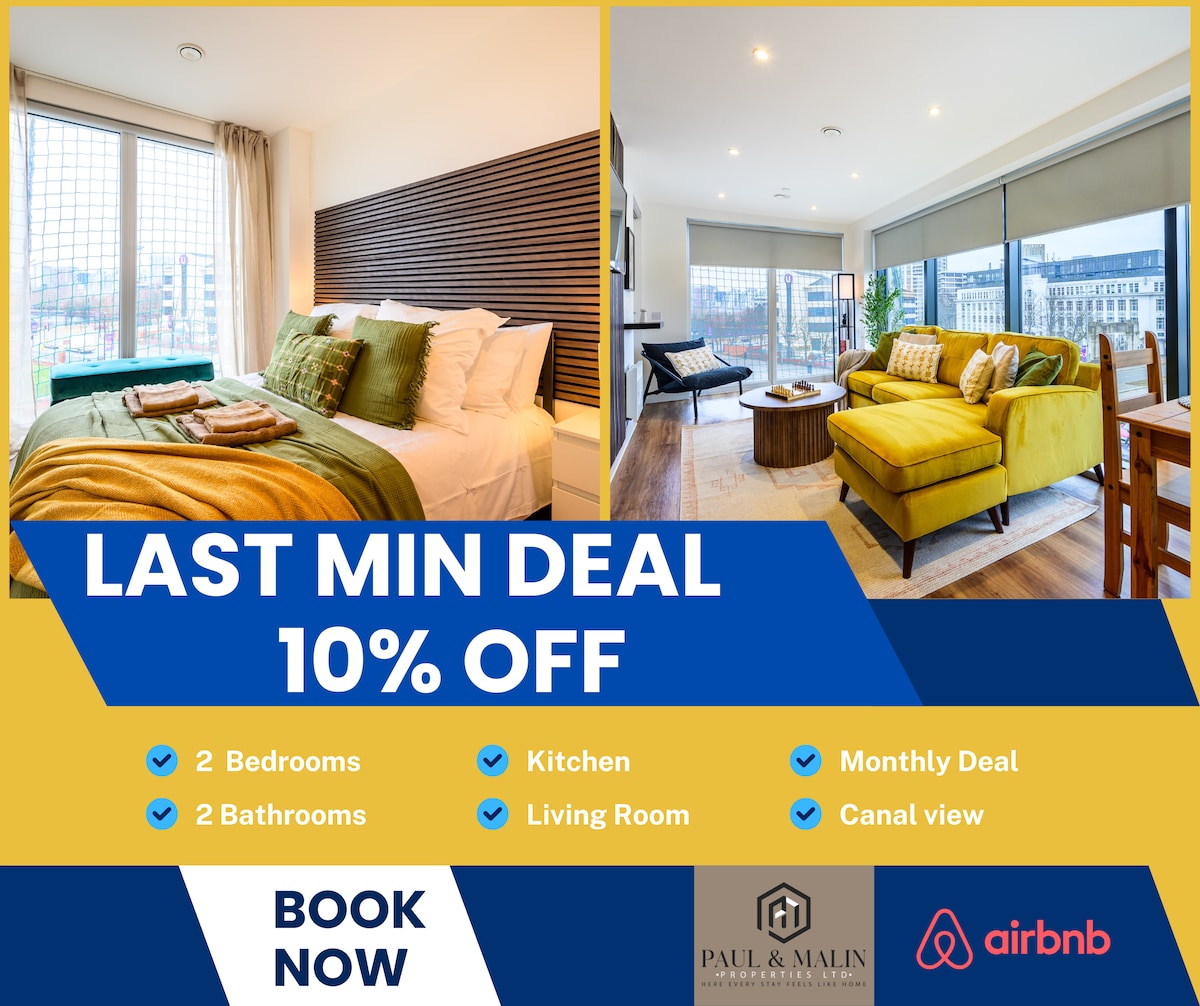 This stylish 2bedroom , 2 beds. Free parking, with water view, is your gateway to the vibrant city of Manchester. Located in the heart of Salford Quays UK, you're just a short walk from the Lowry Outlet and Theatre. Enjoy easy access to Manchester City Centre by tram (10 min) and Trafford Centre by bus (20 min). Plus, you're within walking distance of Old Trafford, the Imperial War Museum North, and Victoria Warehouse. * Prime location * Close to major attract