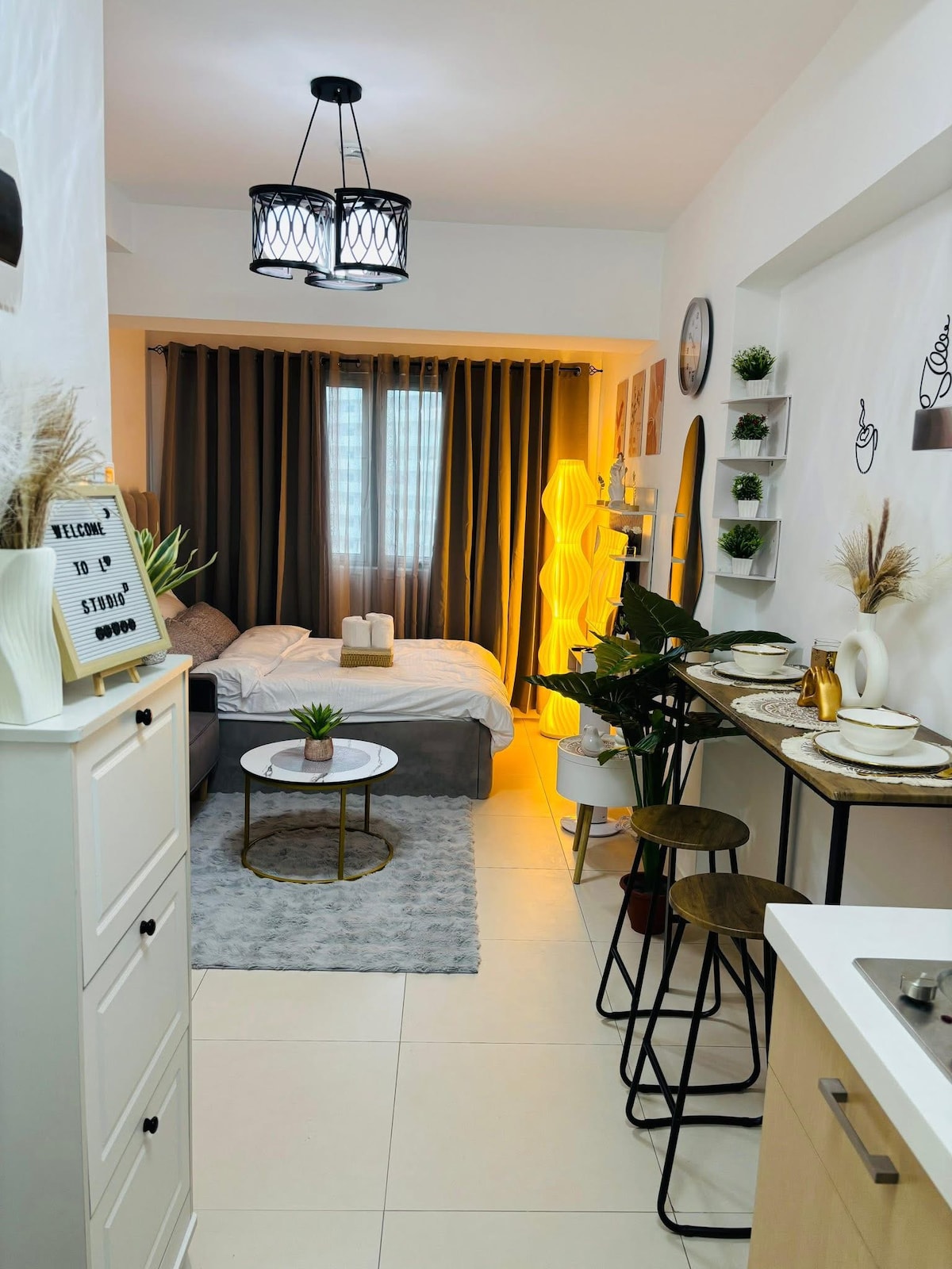 Step into our cozy studio and let the Moroccan-inspired touches & warm color palette invite you to unwind. W/ plush bedding on a queen-sized firm mattress, you’ll sleep like royalty. Grab a cup of coffee & gaze out the window — those mountain views aren’t just beautiful, they’re the backdrop to your city adventure. Our apartment is tucked away in a peaceful nook of Commonwealth, making it a good central spot for exploring Quezon City. Our home is designed to make your stay memorable & comfy!