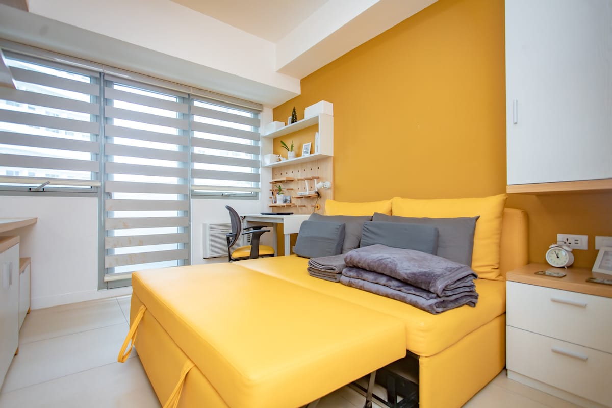 Welcome to your Cozy Oasis! Unplug and unwind in our space designed to offer you complete comfort and tranquility. An unobstructed view of the mountains at the heart of Quezon City? It's possible! Ideal for couples, solo adventurers, or business travelers, our home provides unparalleled views of the surrounding scenery. Elevate your experience with a visit to the Roof Deck with a 360-degree panoramic view that will leave you captivated. Plus, enjoy 𝐅𝐑𝐄𝐄 access to a luxurious pool (2 pax).
